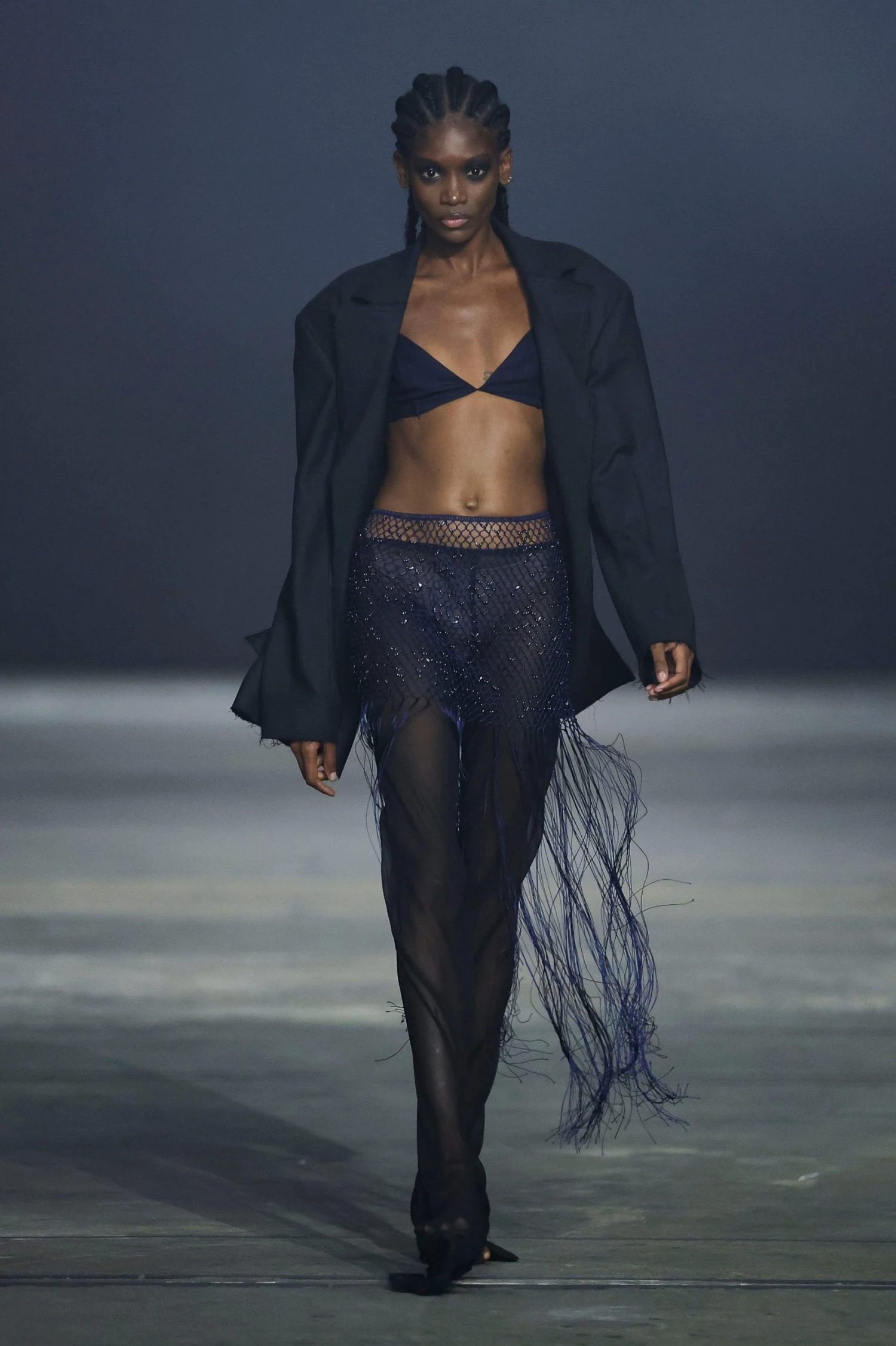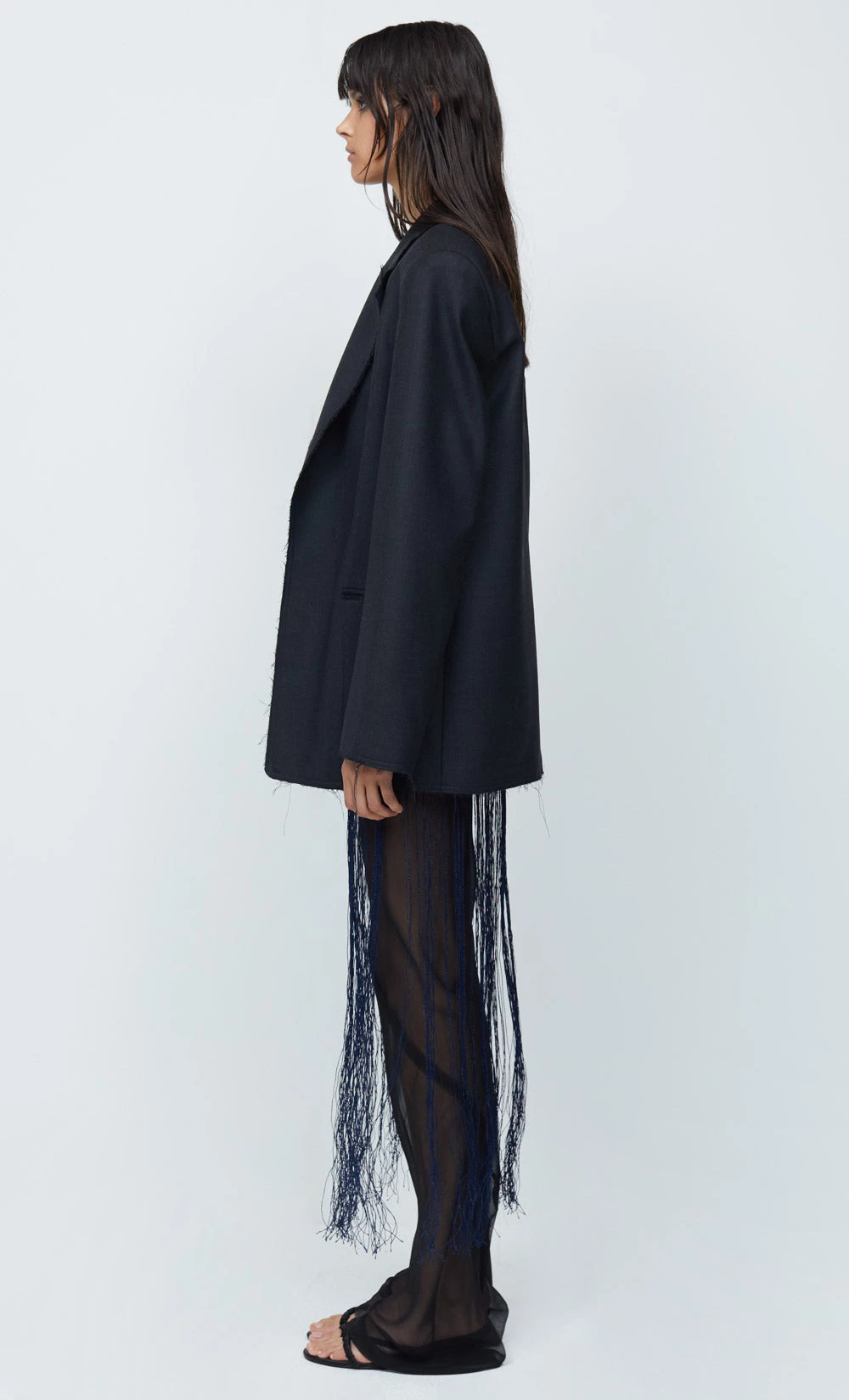 The Floria Pant is cut on the bias from a sheer georgette fabric. The statement low waist, straight leg pant are complimented by raw edge detailing. Styled with our Cartia Beaded Maxi Skirt and Ronnie Jacket. Please note, skirt is sold separately.