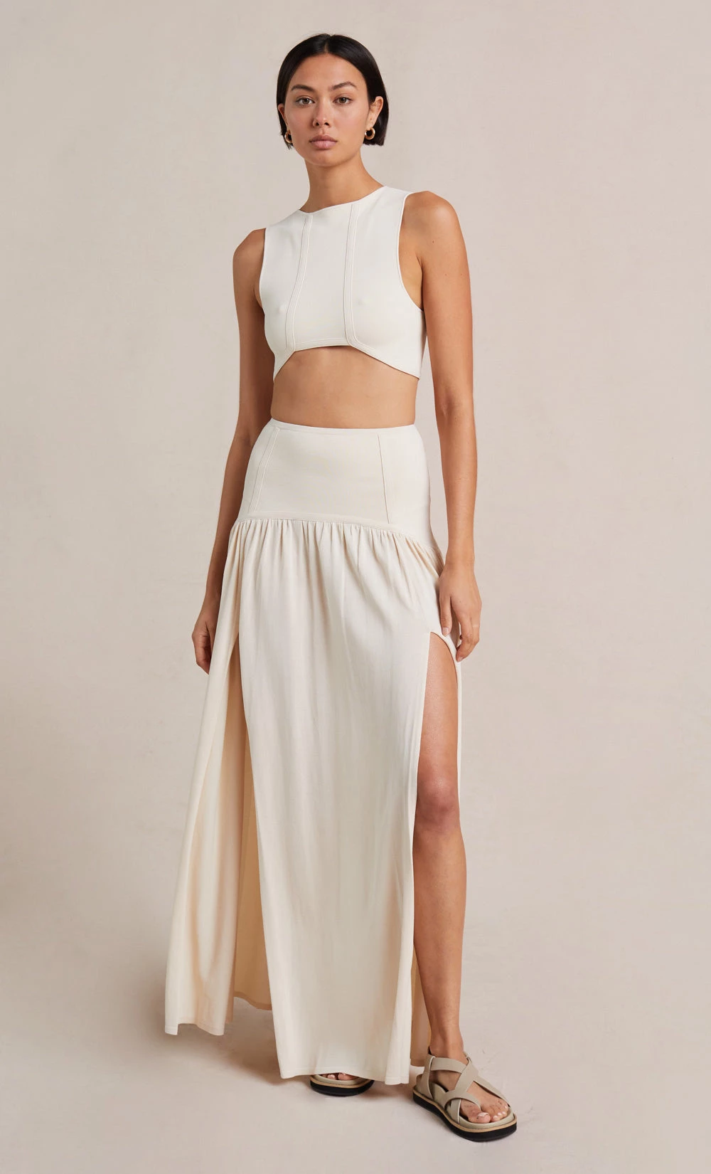 Coordinate your look with the chic and versatile Amalia Maxi Skirt. Spun from a stretchy knit fabric, the maxi skirt features a fitted elasticated dropped waist before moving into a flowy gathered skirt with a high leg split.