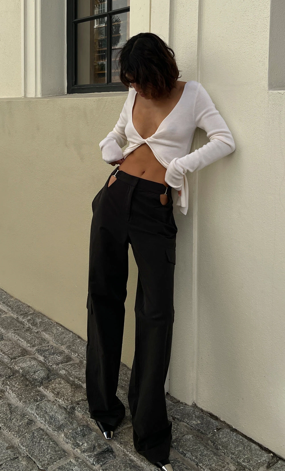 A statement style, the Ana Knit Long Sleeve Twist Top is spun from 100% wool. The long-sleeved top features a plunge V-neckline neckline and cool twist detailing. Styled with our Ronnie Pant.