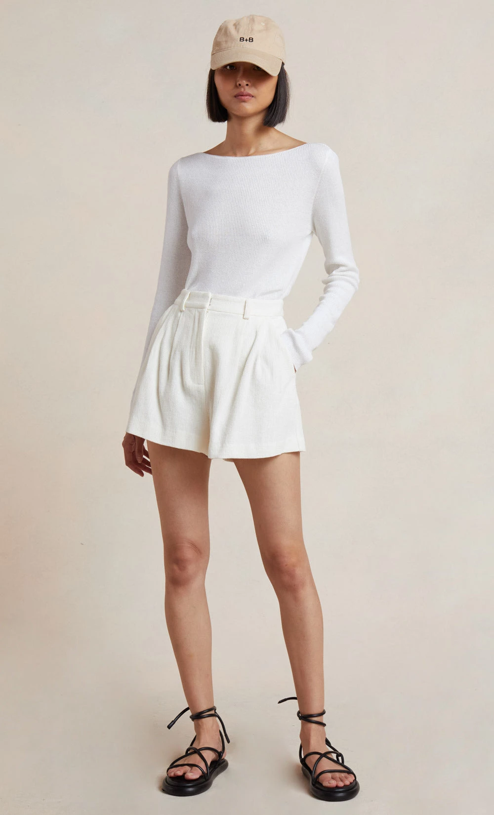 Cut from a woven fabric, the Billie Short is a chic and easy-to-wear tailored style that sits high on the waist before falling into a relaxed short wide leg silhouette.The short is finished with front side pockets and back welt pockets. Styled with our Pantheon Knit Long Sleeve Top.