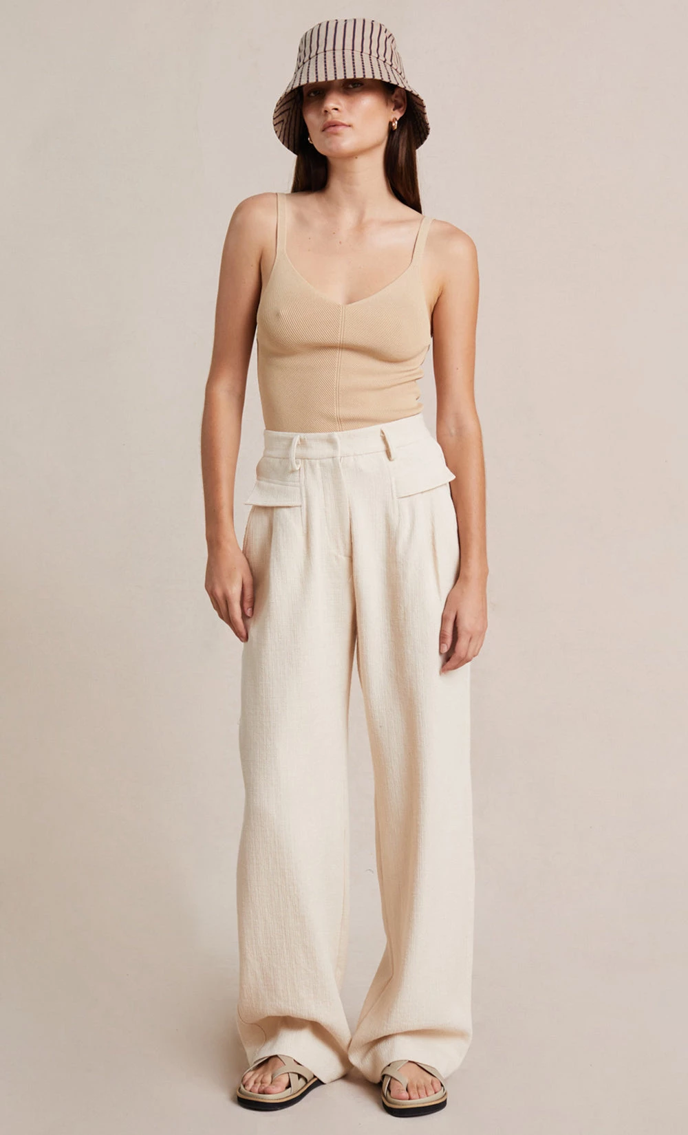 A wardrobe staple, the Billy Pant is a stylish and easy to wear tailored pant that sits high on the waist before falling into a relaxed and comfy wide leg silhouette. The pants are finished with pocket detailing on the front. Styled with our Eden Tank.