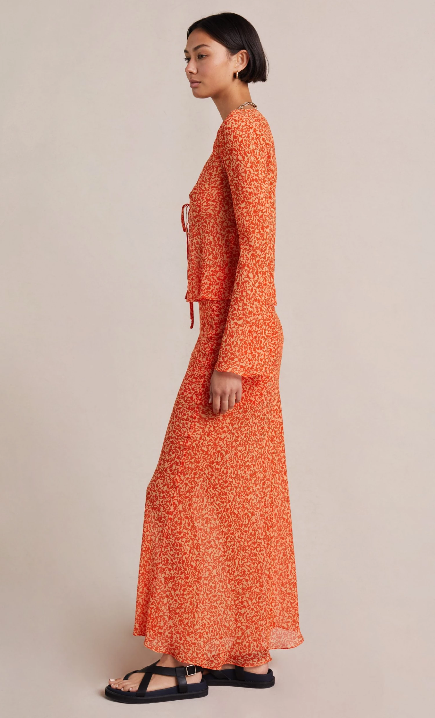 A classic slip-style, the Cheri Maxi Skirt is spun from a signature print silk fabric. This easy-to-wear skirt features a flattering bias cut silhouette and a maxi length.