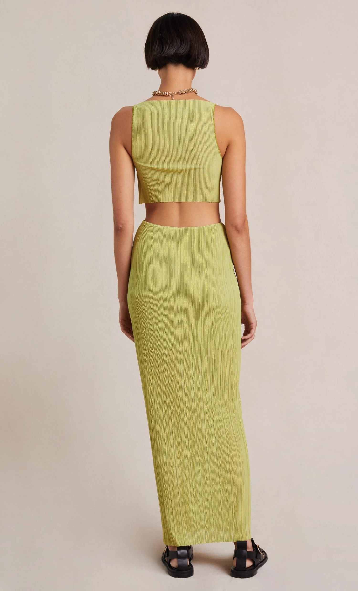 As worn by Kendall Jenner, the sculptural Plisse Midi Skirt is cut from a recycled fabric with a plisse design and sleek silhouette. As the skirt has a raw hemline, you are able to cut it to your preferred length with fabric scissors. The midi skirt has an elasticated waistband that falls into a narrow longline hem. Styled with our Plisse Top.