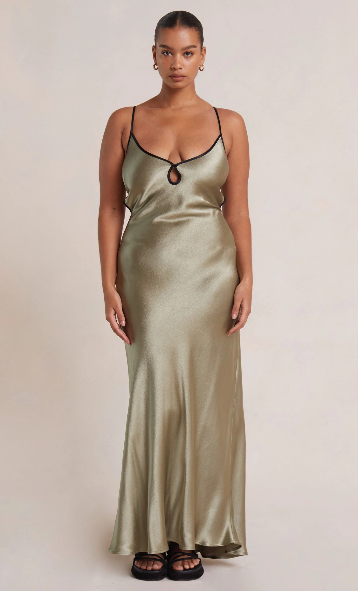 Best selling slinky v-neck maxi dress with keyhole cut out detail.