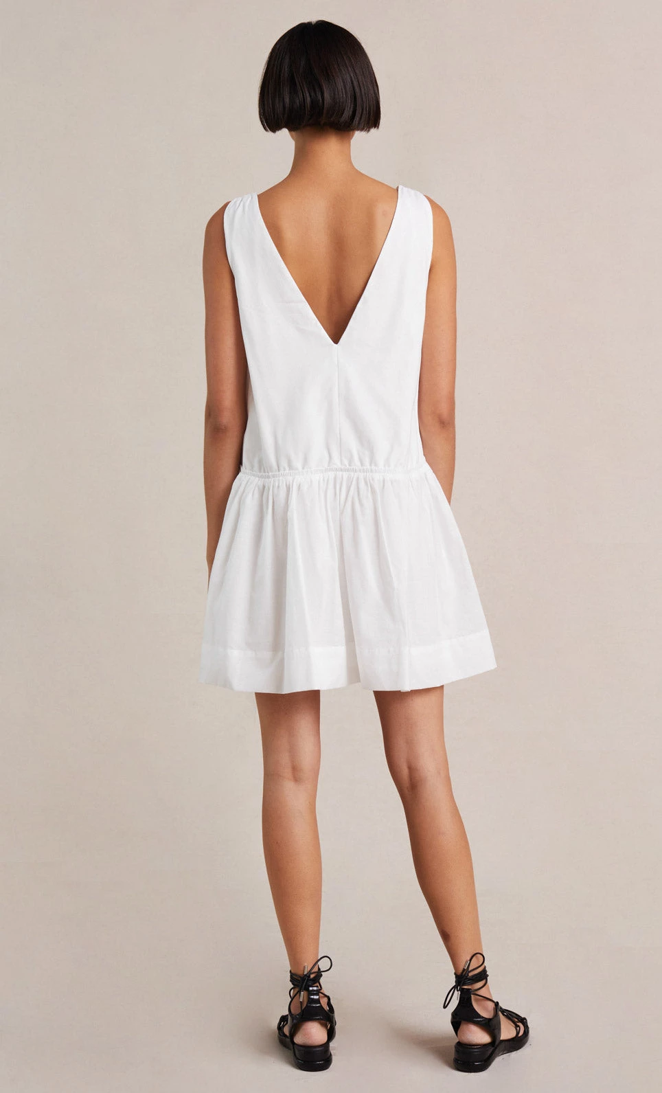 The Felice Mini Dress is crafted from a cotton fabric, this sleeveless mini dress features a relaxed design with a plunging V-neckline that leads to a V-backline, side pockets and a front triangle cutout at the waist that flows into a gathered skirt. Felice means happiness and you’d feel good too with this little number in your wardrobe.