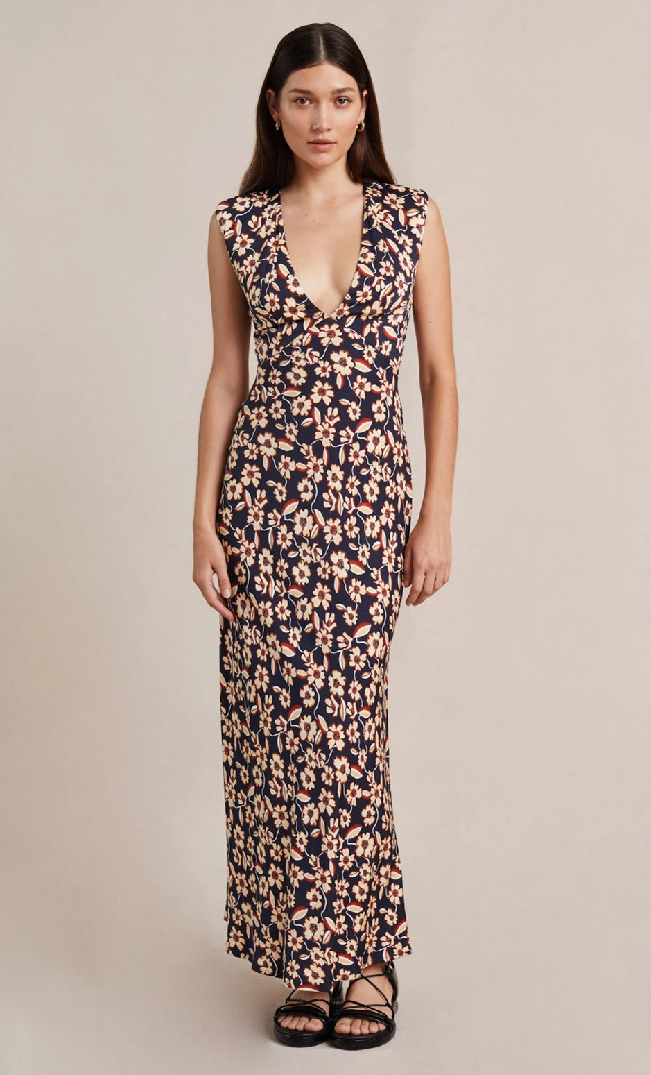 The Modern Romance Cap Dress is a flattering maxi length bias cut style with a V-neckline, cap sleeves and an open back with neck self-ties. The dress cinches in at the high waist, skims the hips and falls into a floaty skirt.