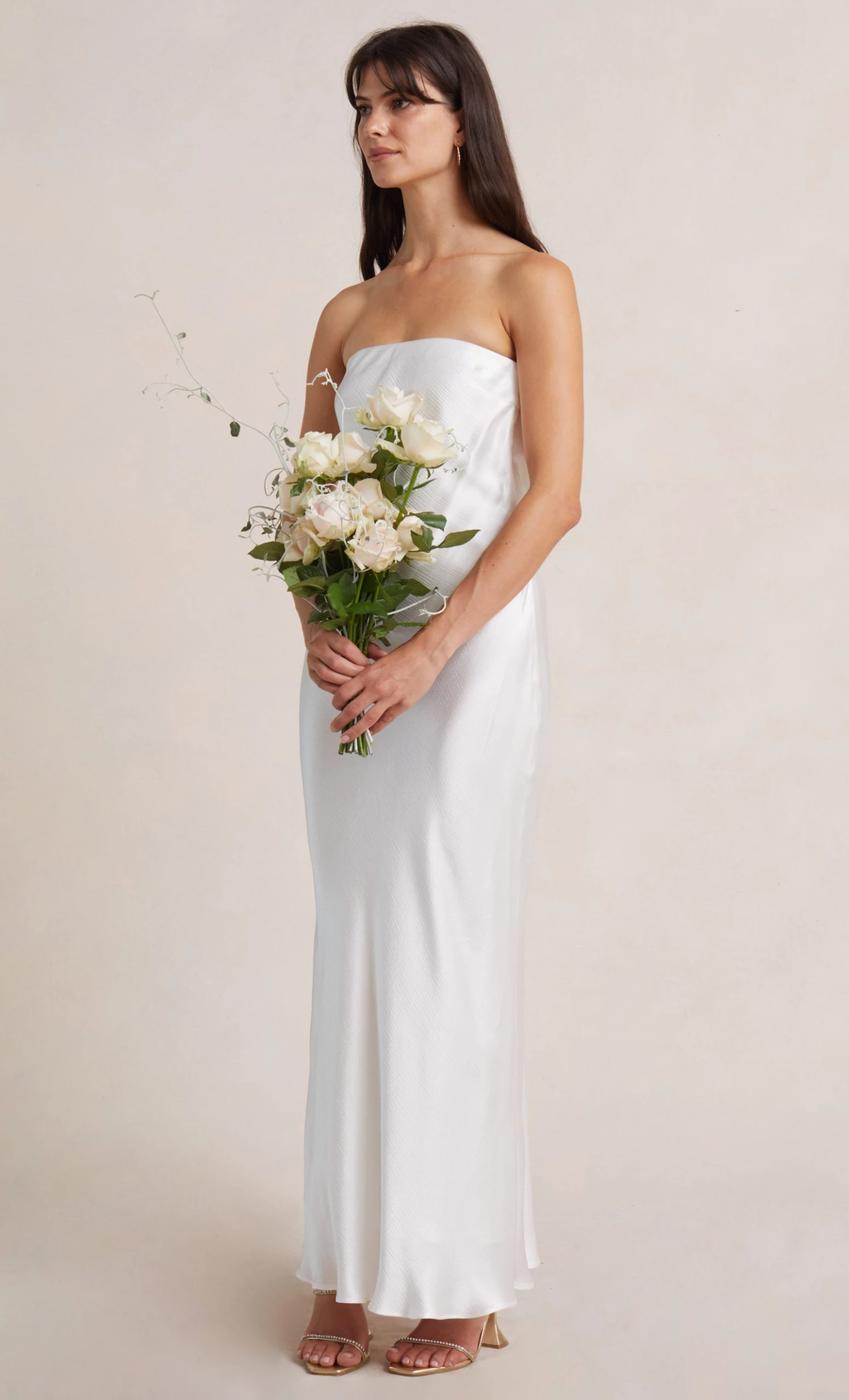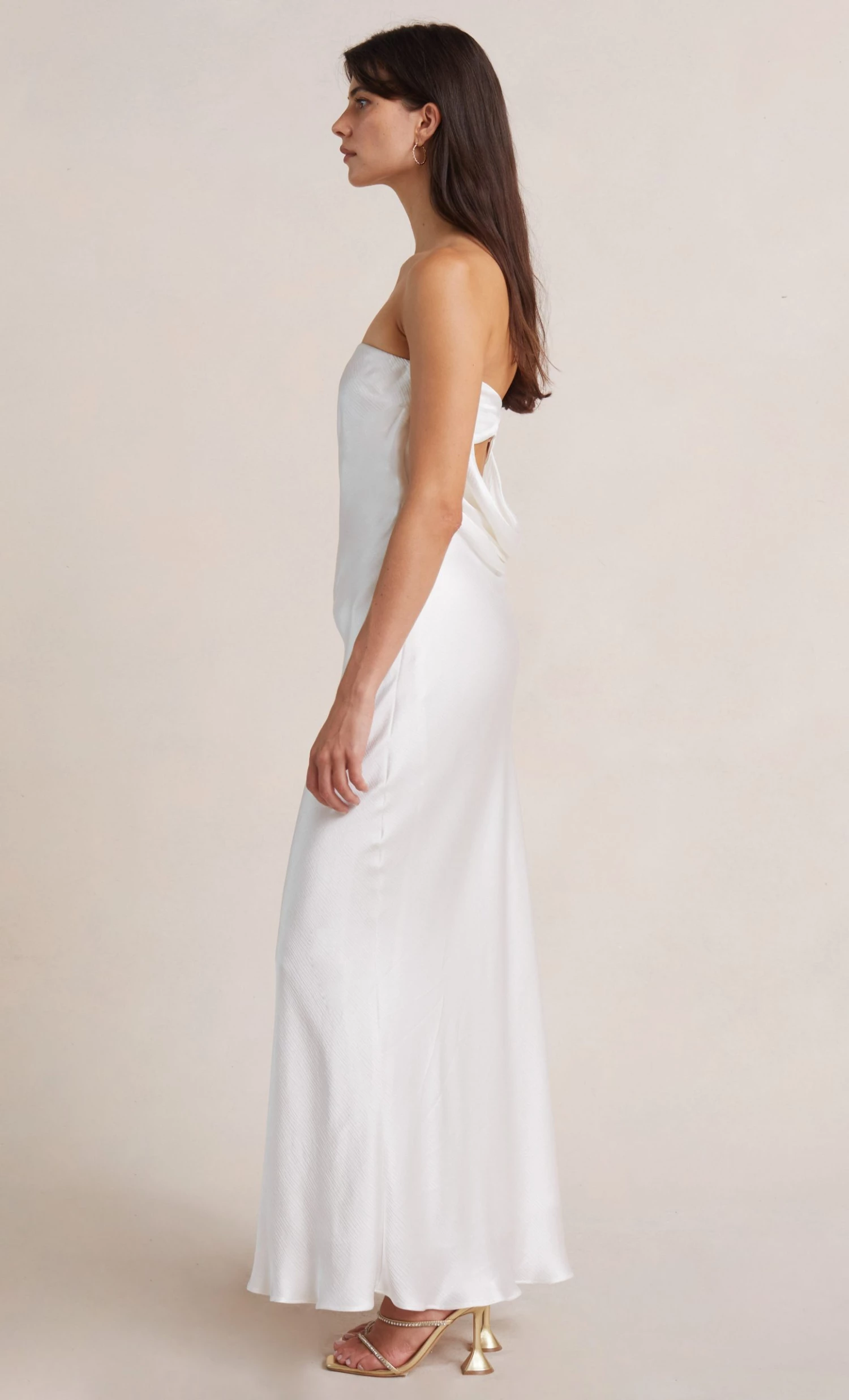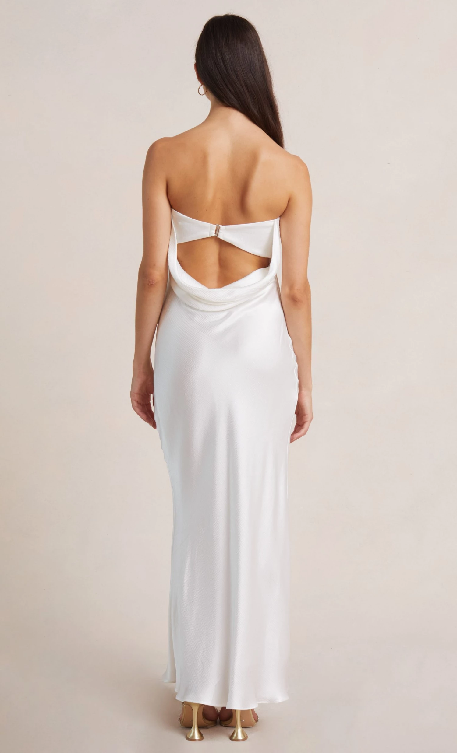 A best selling silhouette, the Moon Dance Strapless is an easy to wear bias cut maxi dress that flatters all body shapes. The maxi dress features a statement low cowl back fastened with a back clip.