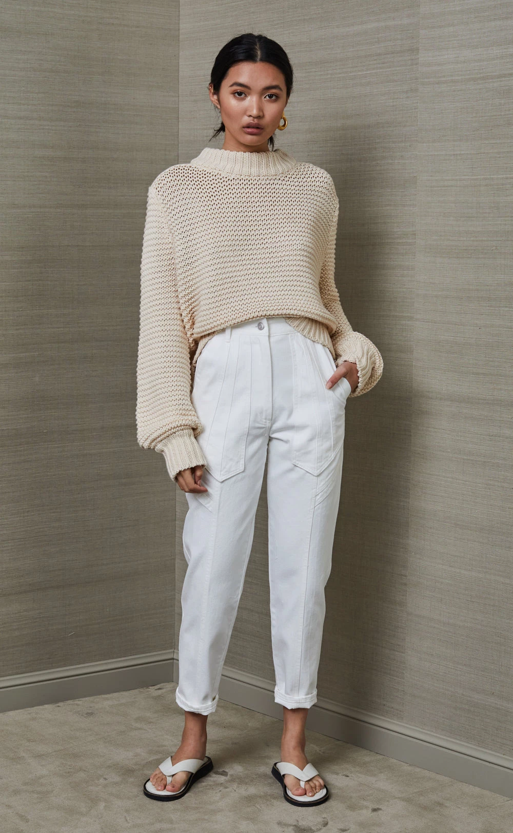 The Elsa Knit Jumper is made from a cotton blend in a relaxed and oversized silhouette. The cable knit jumper features drop shoulders, balloon sleeves and wide rib detailing around the neck, sleeves and bodice hem.