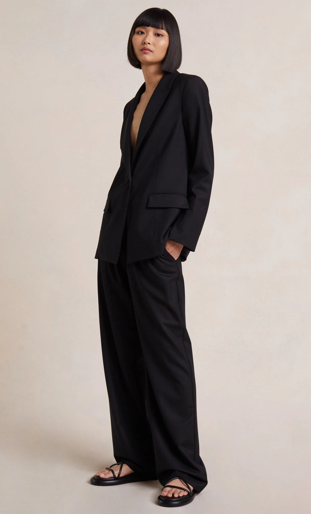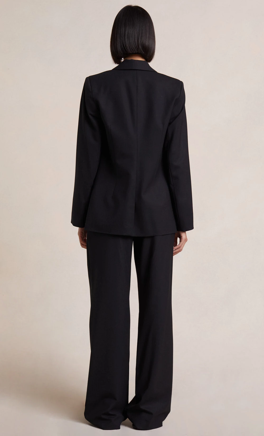 Crafted in a classic blazer silhouette, the Emmy Jacket is trans-seasonal and easy-to-wear. The single-breasted blazer features slight shoulder pads, flap pockets, and statement splits on the hem of sleeves. Styled with our Emmy Pant.
