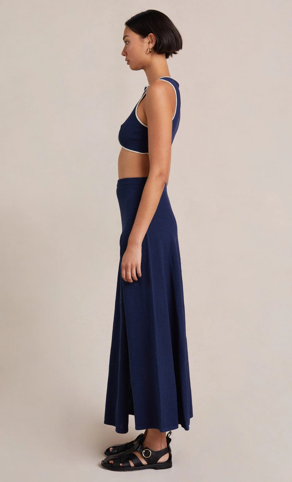The Enzo Knit Top is a cropped style spun from a comfy stretch knit fabric. The knit top features a fitted bust with a high scoop neckline and a feature contrasting trim. Styled with our matching Enzo Knit Skirt.