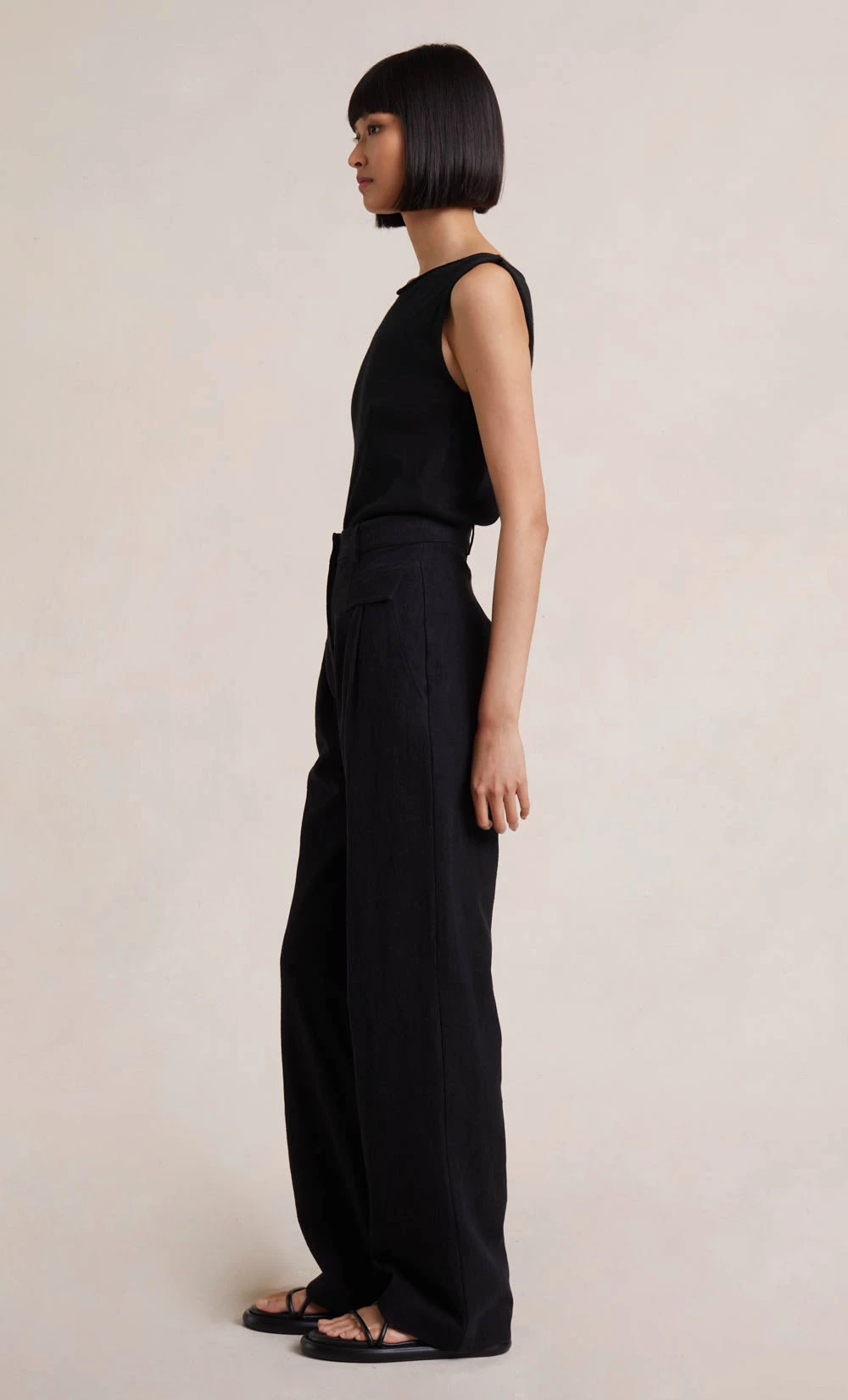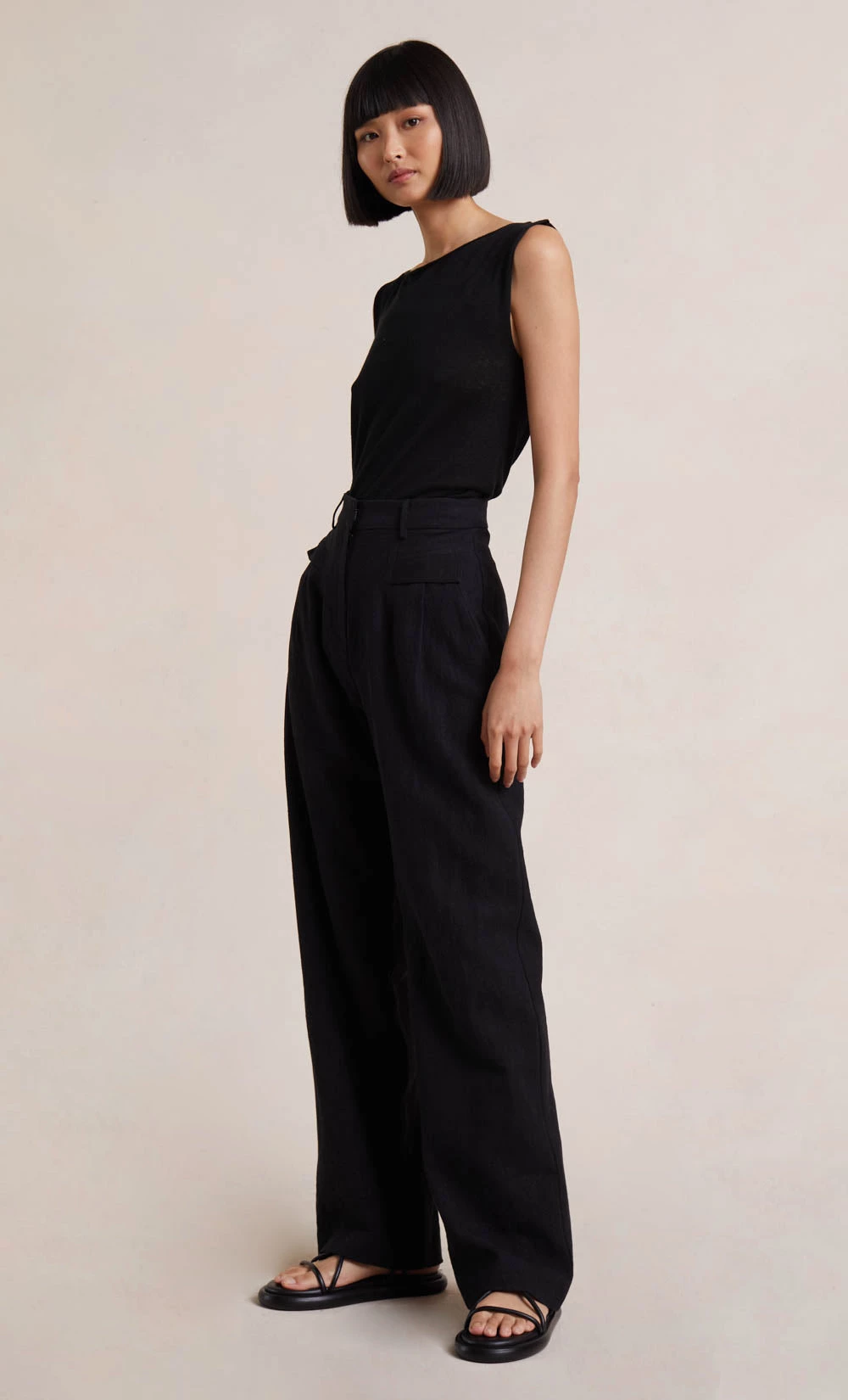 The Harlow Pant is a flattering tailored pant that sits high at the waist and falls into a wide leg fit through the legs. Cut from an easy to wear cotton/ramie blend fabric, the pants are finished with front pockets and a concealed front zipper. Styled with our Jimi Knit Tank Top.