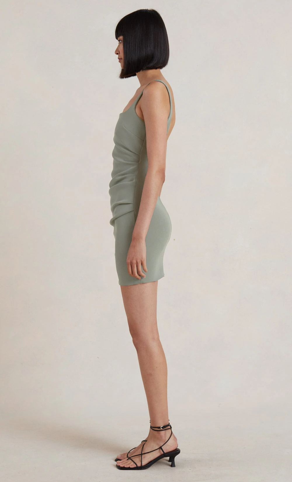 Our effortless Square Neck Mini Dress cut from a stretch bonded crepe fabric that cinches in the body and skims the silhouette. The mini dress features a straight neckline and thin straps and is complimented by side tuck detailing to create a flattering silhouette.