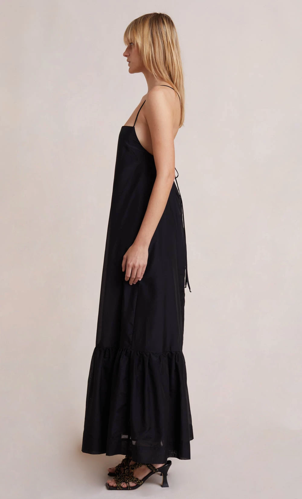 An effortless and easy-to-wear style, the Millie Maxi Tent Dress is crafted from a woven fabric. The dress features a straight neckline in a floaty silhouette complemented by thin rouleau straps with back sefl-ties, and a gathered hem.