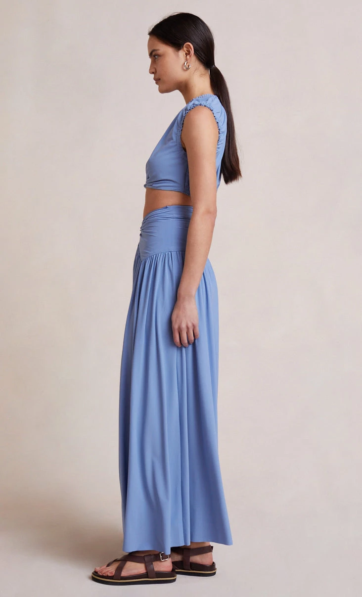 Gathered stretch maxi skirt with u-ring