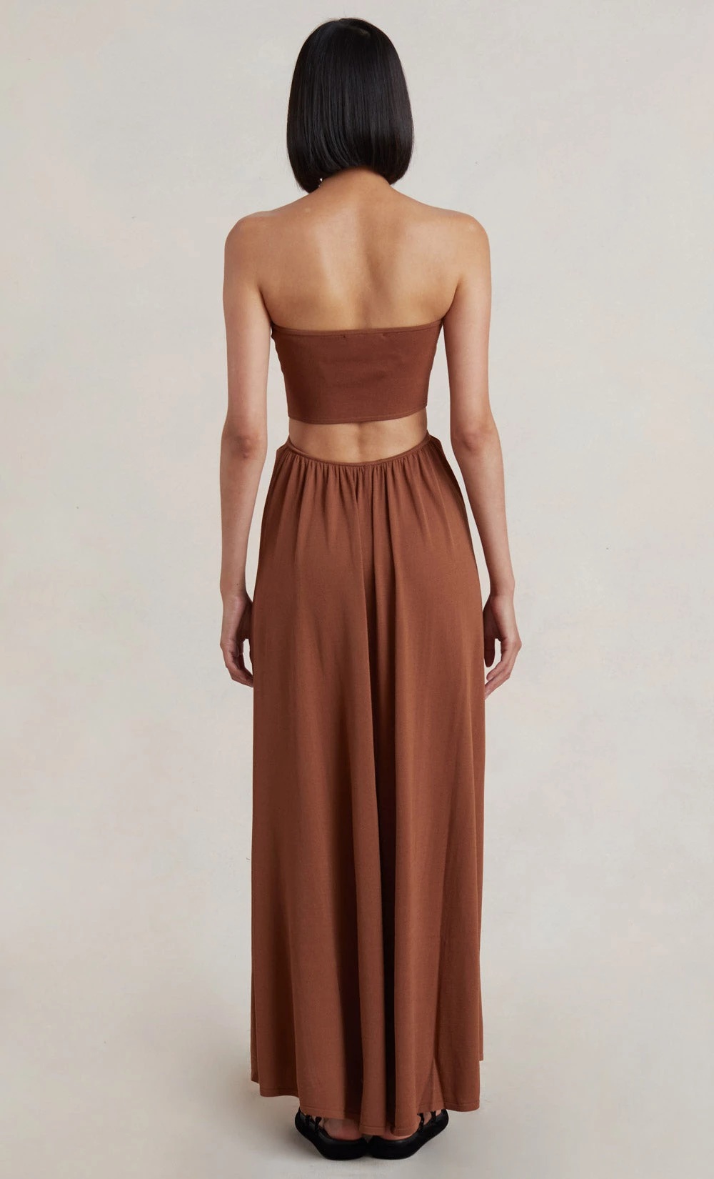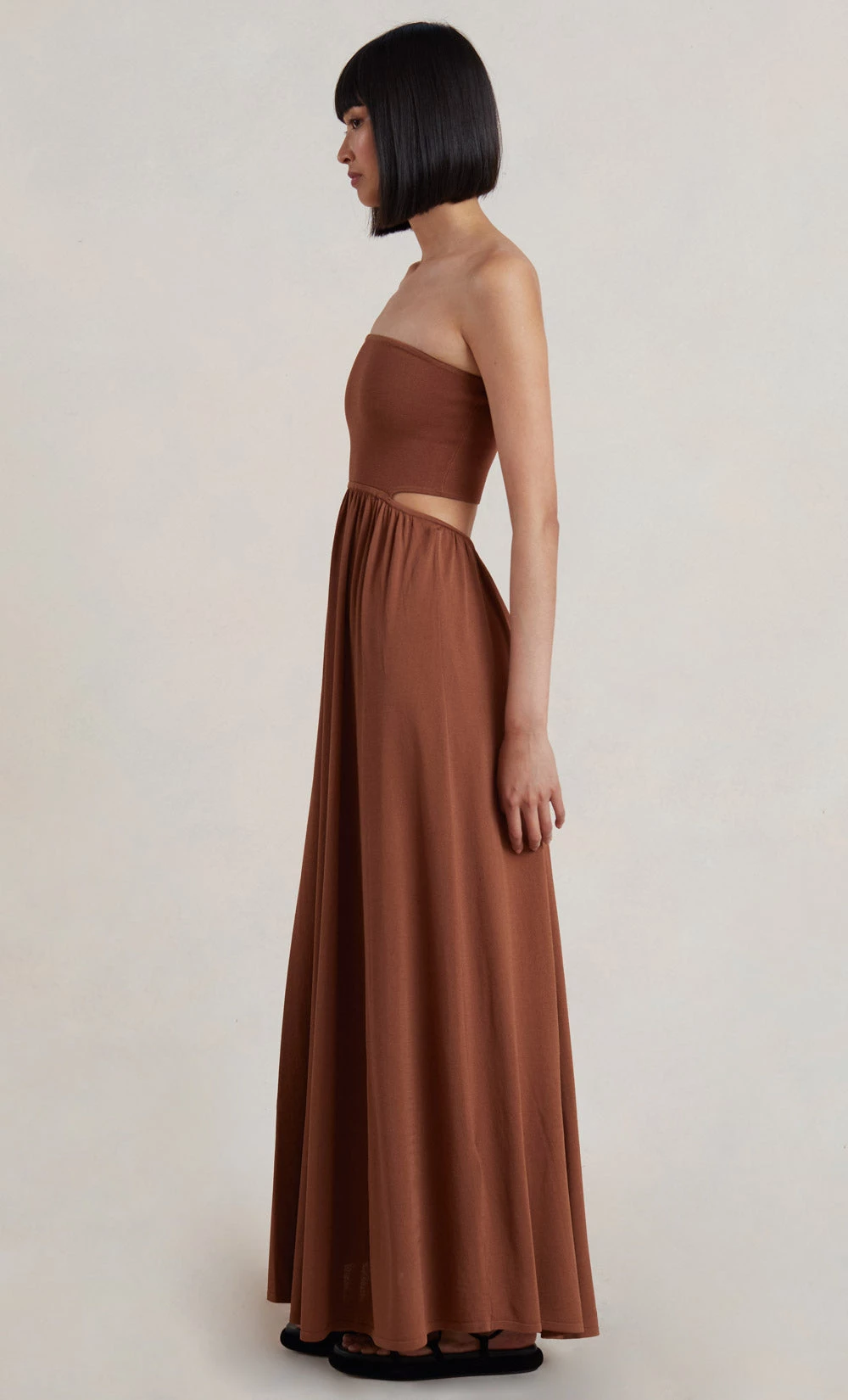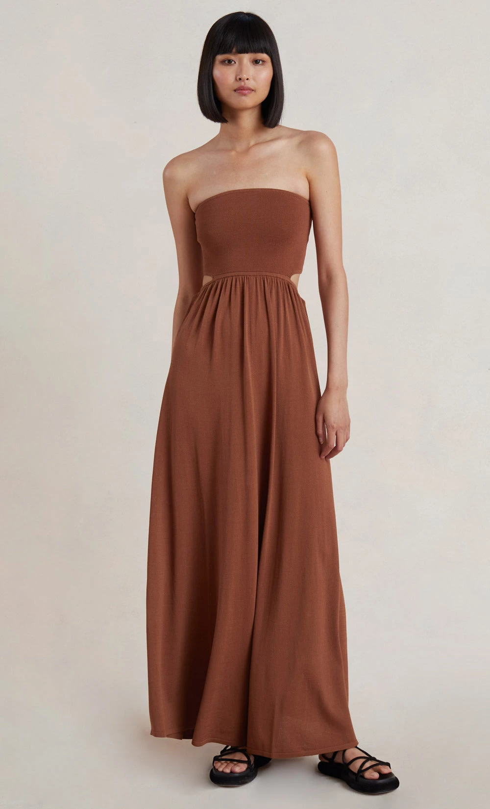 An effortless and easy-to-wear style, the Miranda Knit Dress is spun from a knit fabric. The dress features a fitted bodice with a straight neckline and a waist cutout detail that falls into a full length maxi skirt.