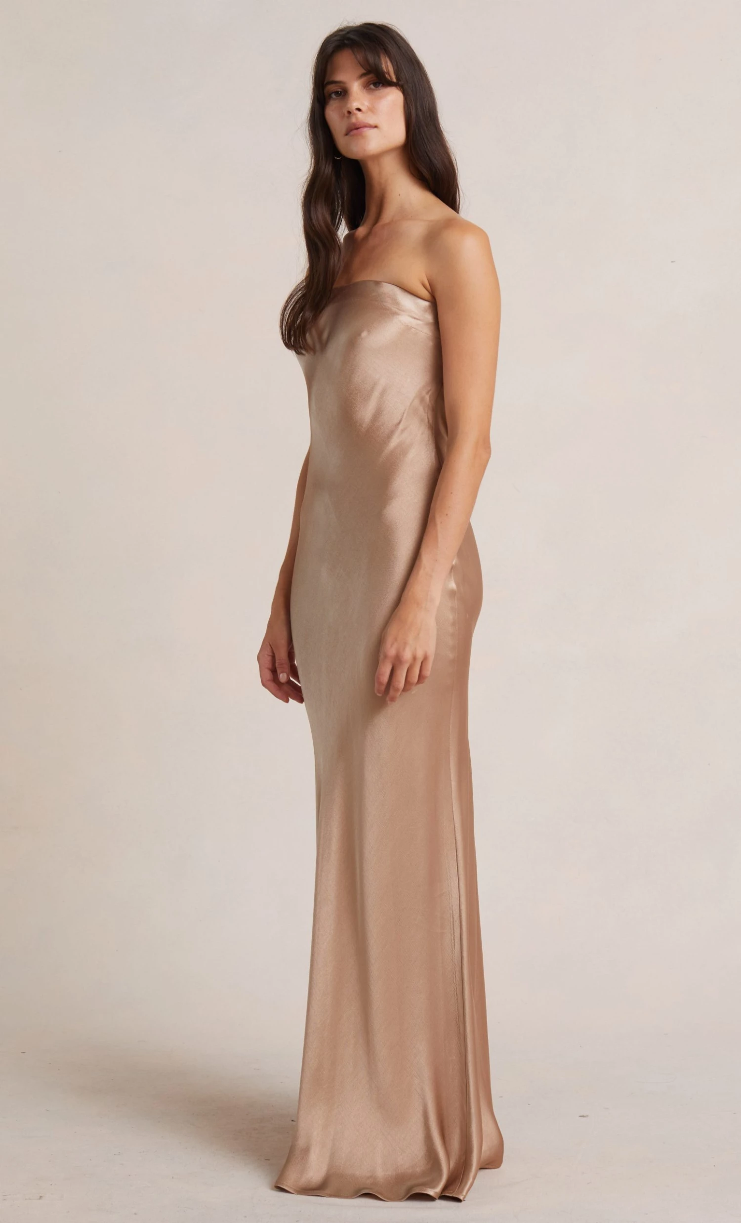 A best selling silhouette, the Moon Dance Strapless is an easy to wear bias cut maxi dress that flatters all body shapes. The maxi dress features a statement low cowl back fastened with a back clip.