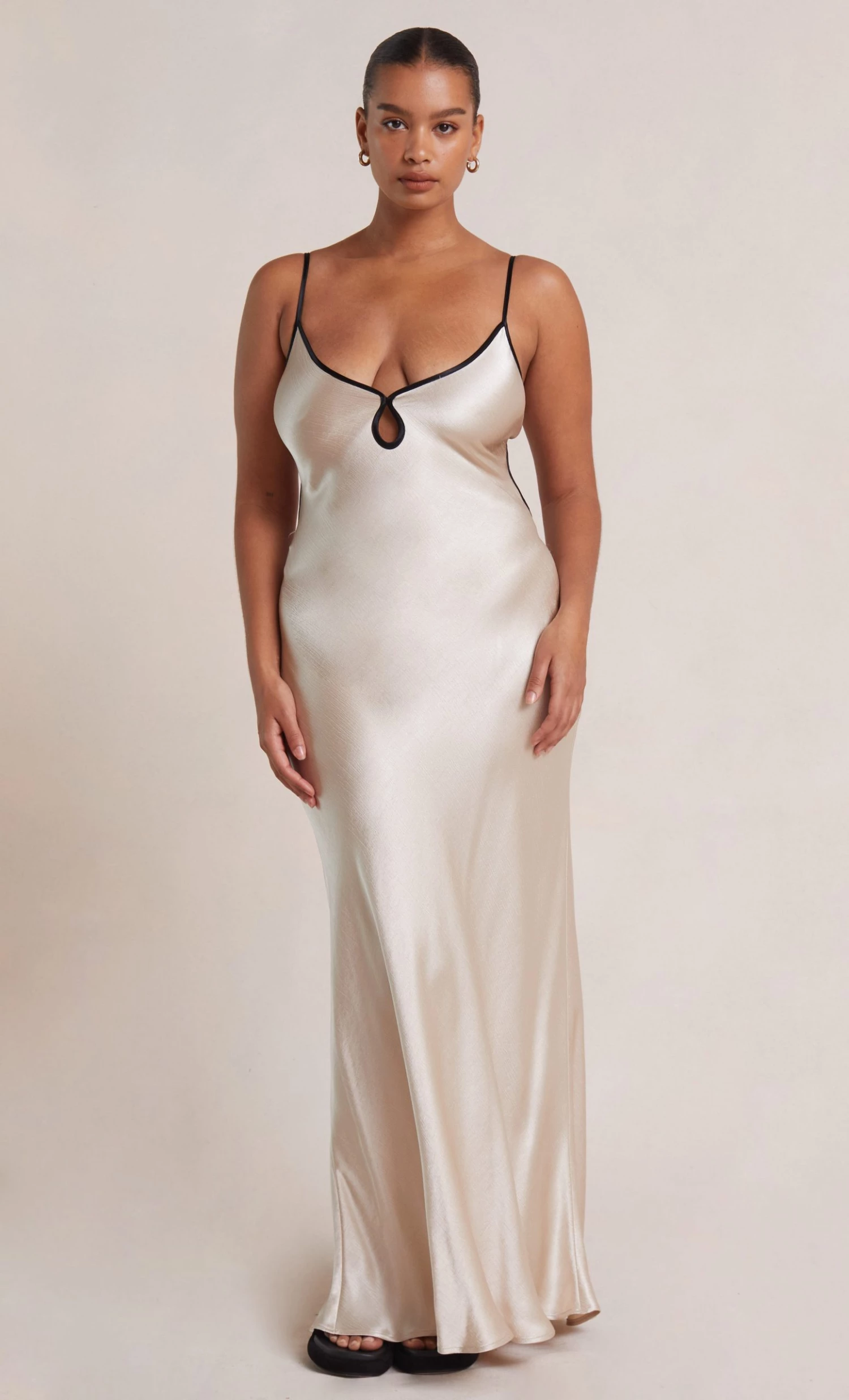 Best selling slinky v-neck maxi dress with keyhole cut out detail.