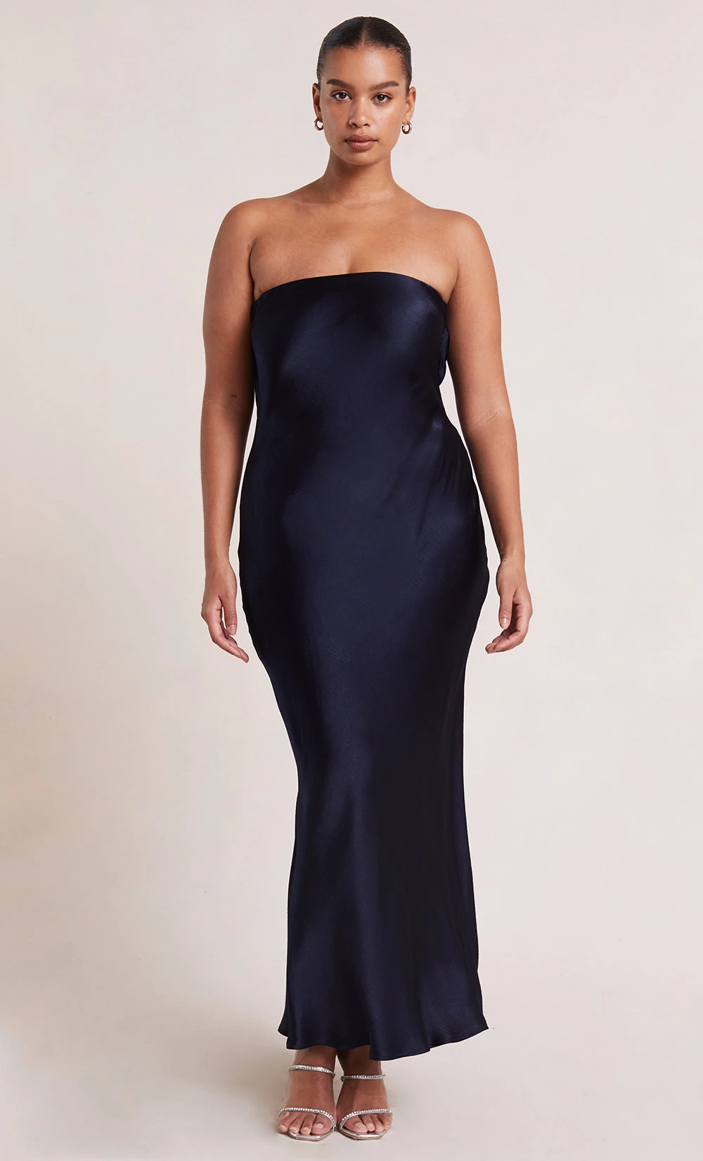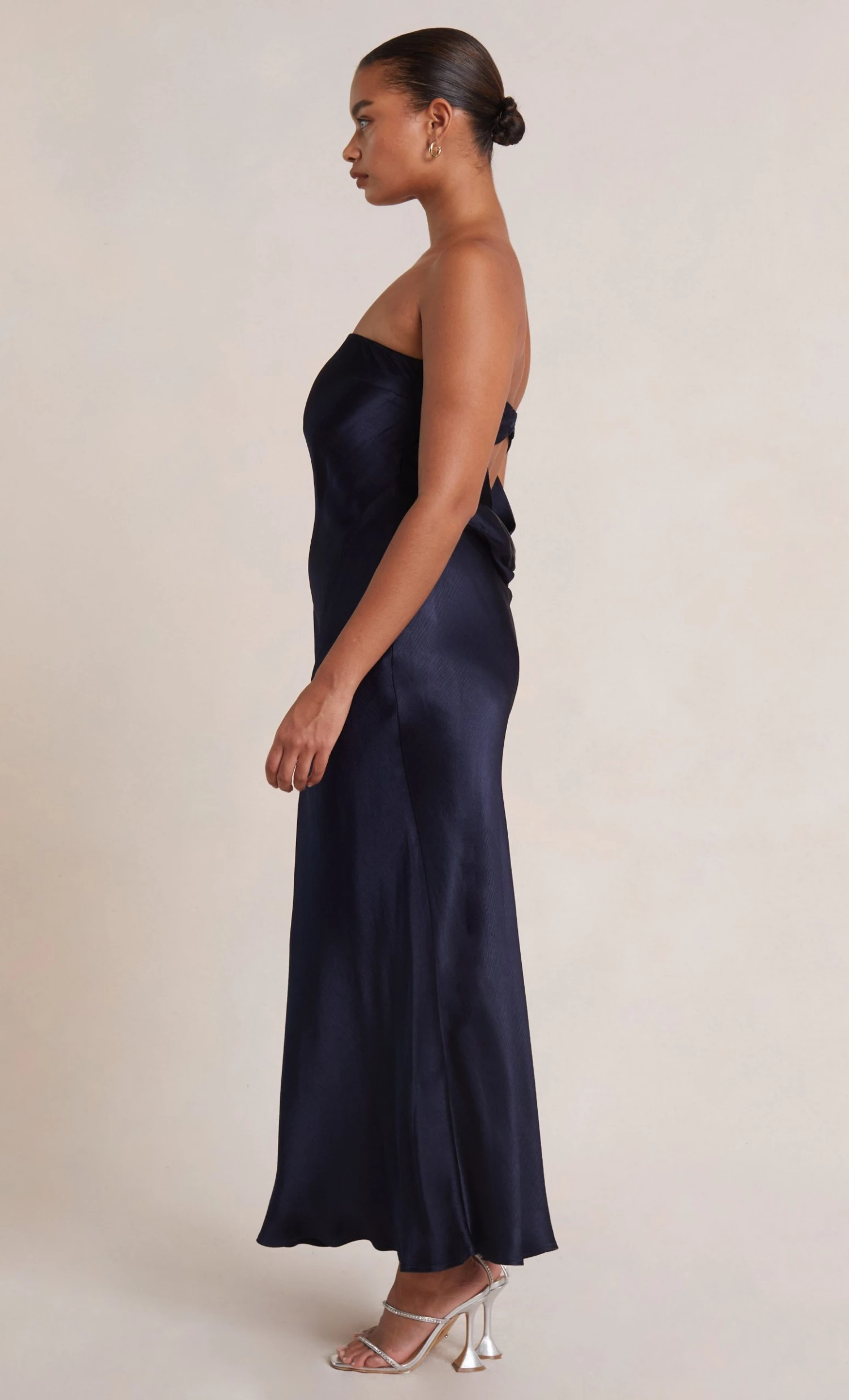 A best selling silhouette, the Moon Dance Strapless is an easy to wear bias cut maxi dress that flatters all body shapes. The maxi dress features a statement low cowl back fastened with a back clip.