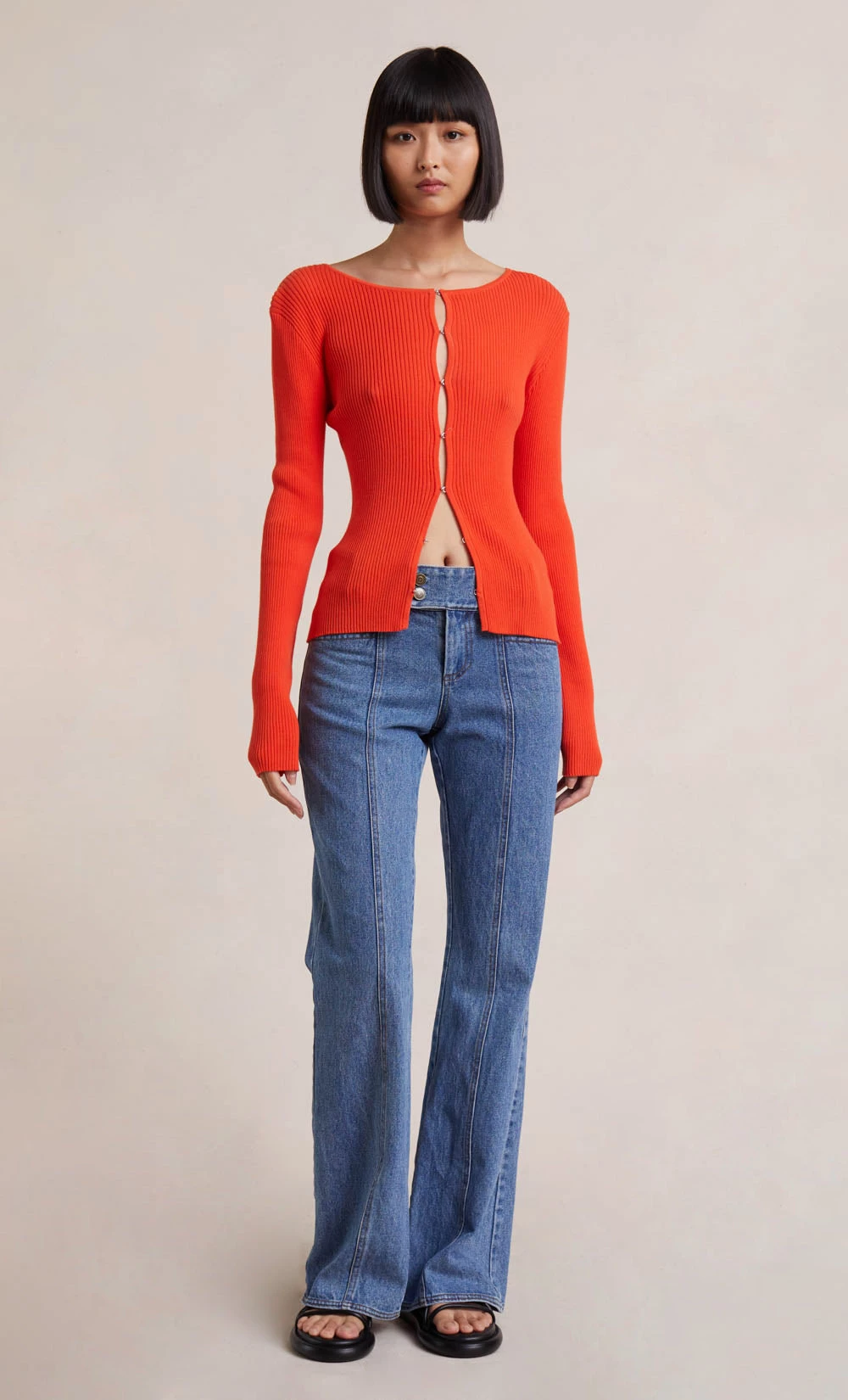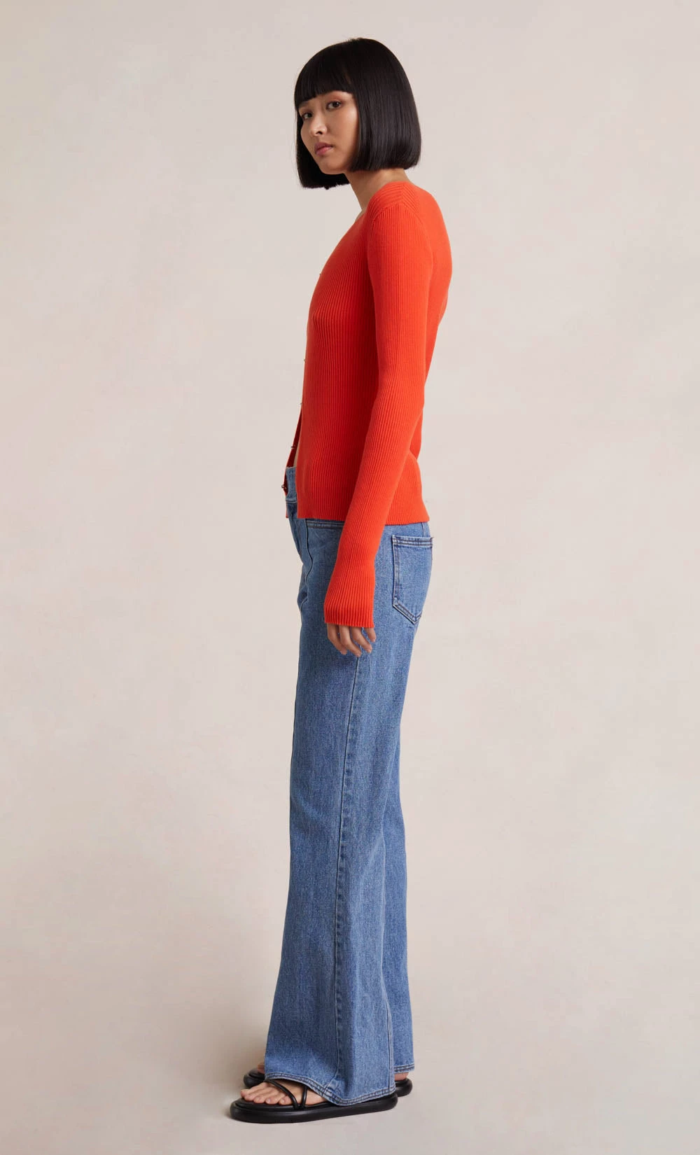 Cut from a ribbed cotton fabric, the Sapphira Knit Cardigan is designed in a classic shape. The versatile knitwear style is finished with statement hook and ball hardware. Styled with our Cleo Flare Pant.