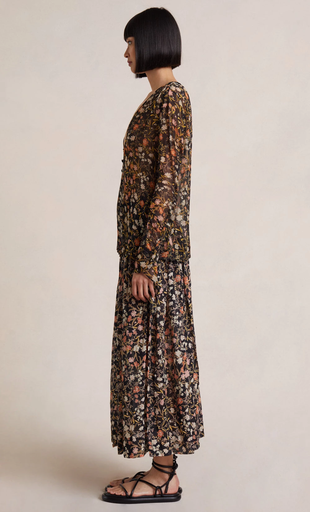 A floaty, easy-to-wear style, the Nightshade Midi Skirt is cut from a breezy printed cotton fabric. Designed to be fitted at the high waist with gathered details, the midi-length skirt features a shirred waist yoke and high side-leg split. Styled with our Nightshade Long Sleeve Shirt.