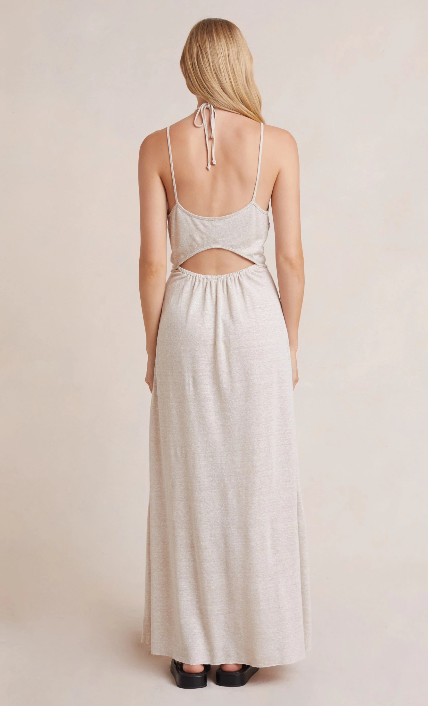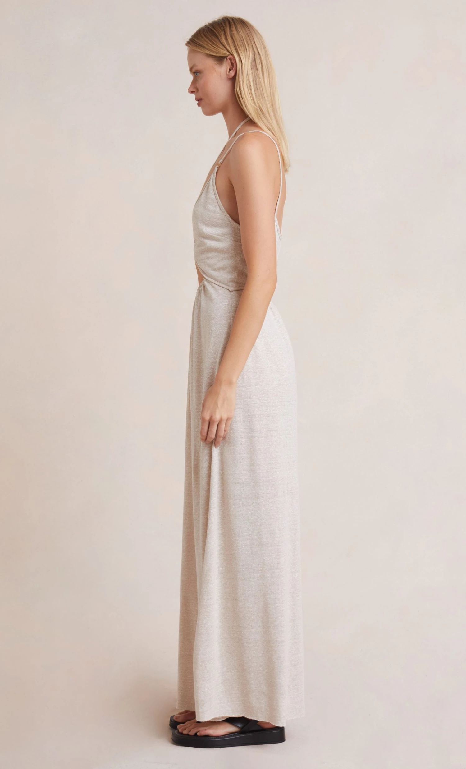 The Safi Maxi Dress is a strappy statement style crafted from a lightweight linen-blend fabric. The maxi dress features a plunging V-neckline with an O-ring detail, front cutout detail underneath the bust and a flowy maxi length skirt.