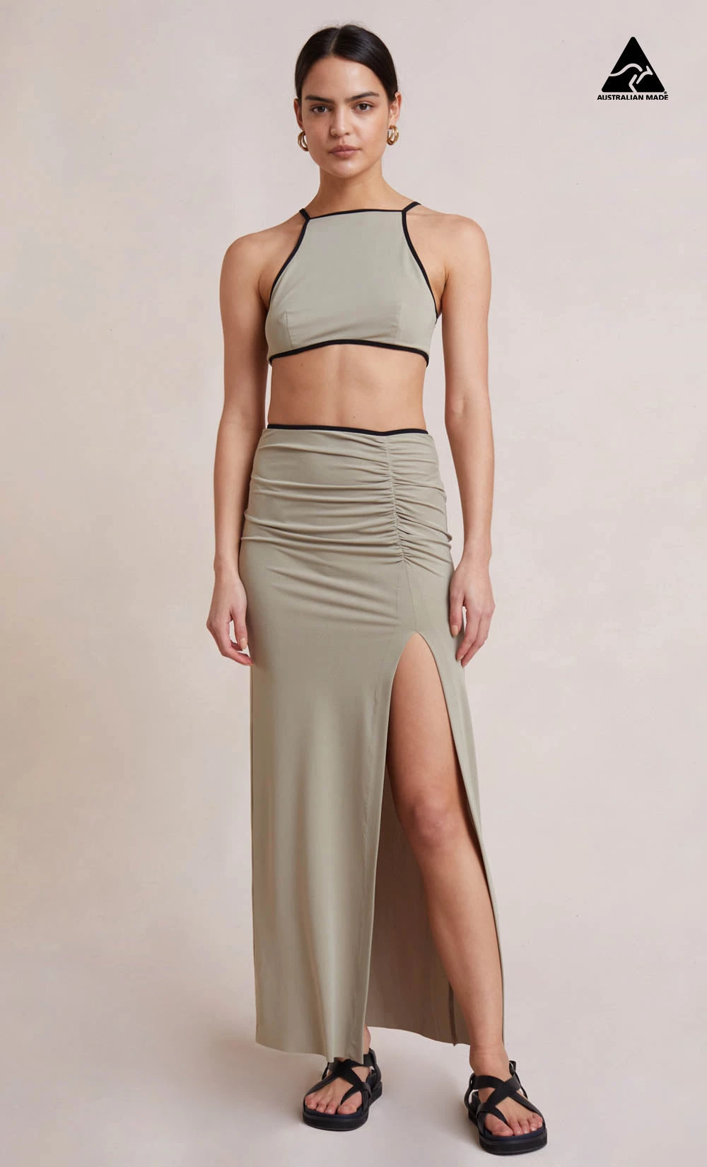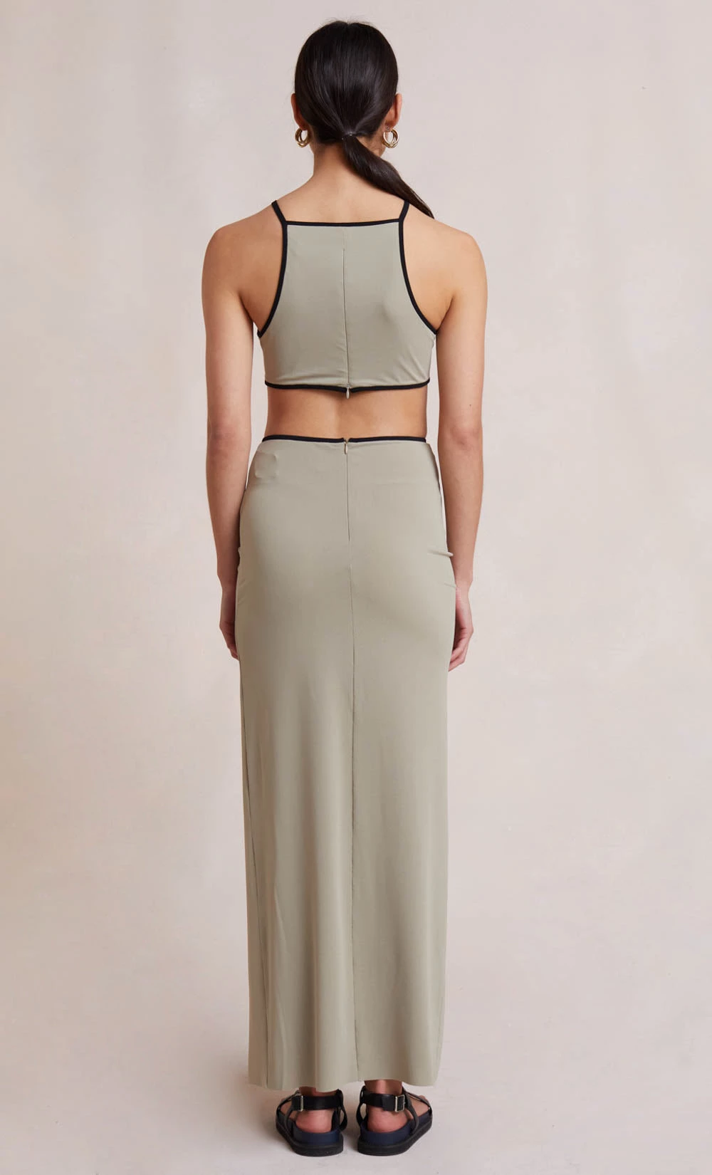 The Sesame Top is an effortless statement style cut from a woven fabric. This fitted crop top features a high straight neckline with thin rouleau straps and contrast detailing. Styling with our matching Sesame Maxi Skirt.