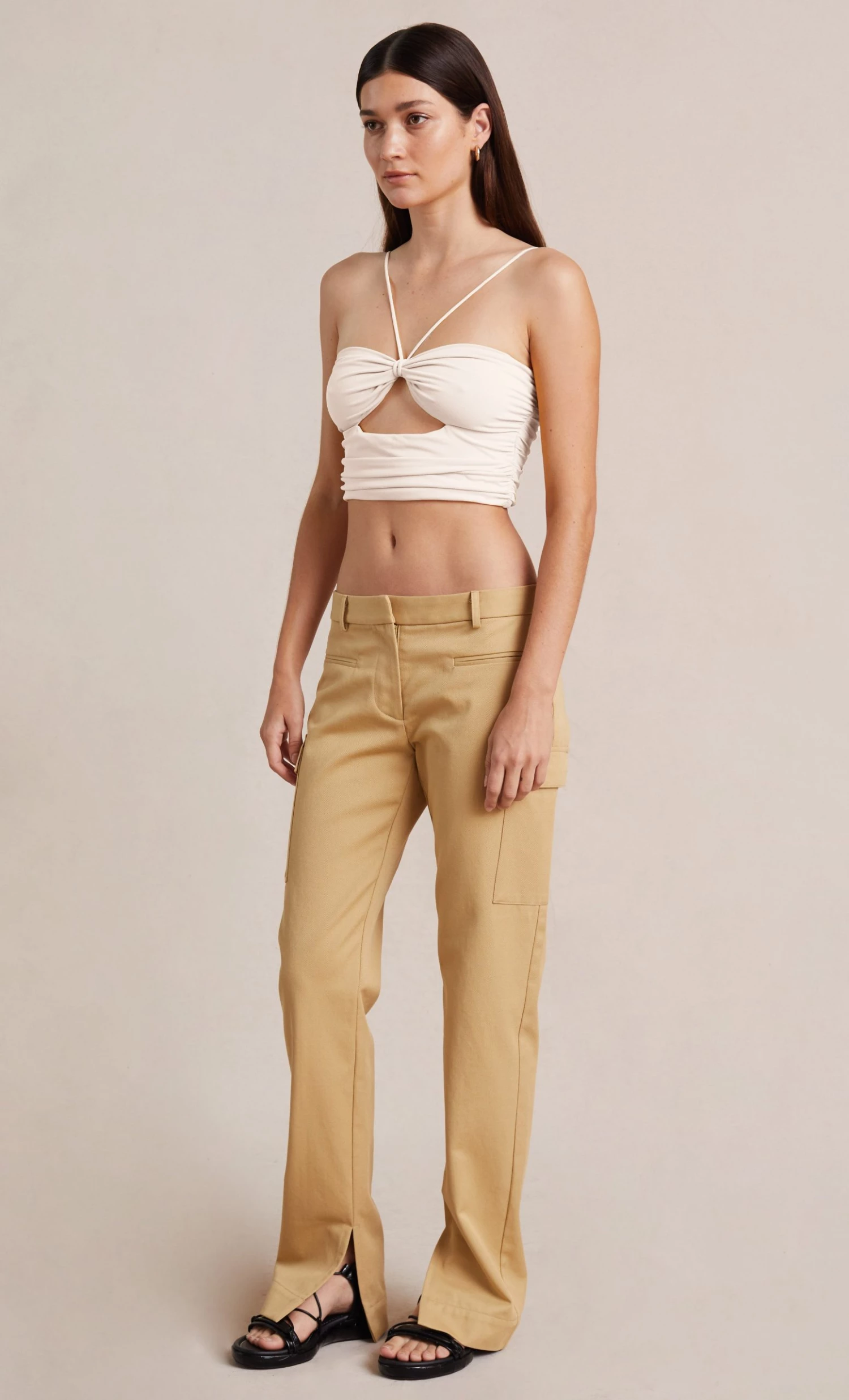 Coordinate your look this season with the Soleil Top. This statement halter style is crafted from a soft crepe knit fabric and features a cutout detail underneath the gathered bust. Styled with our Toni Short.