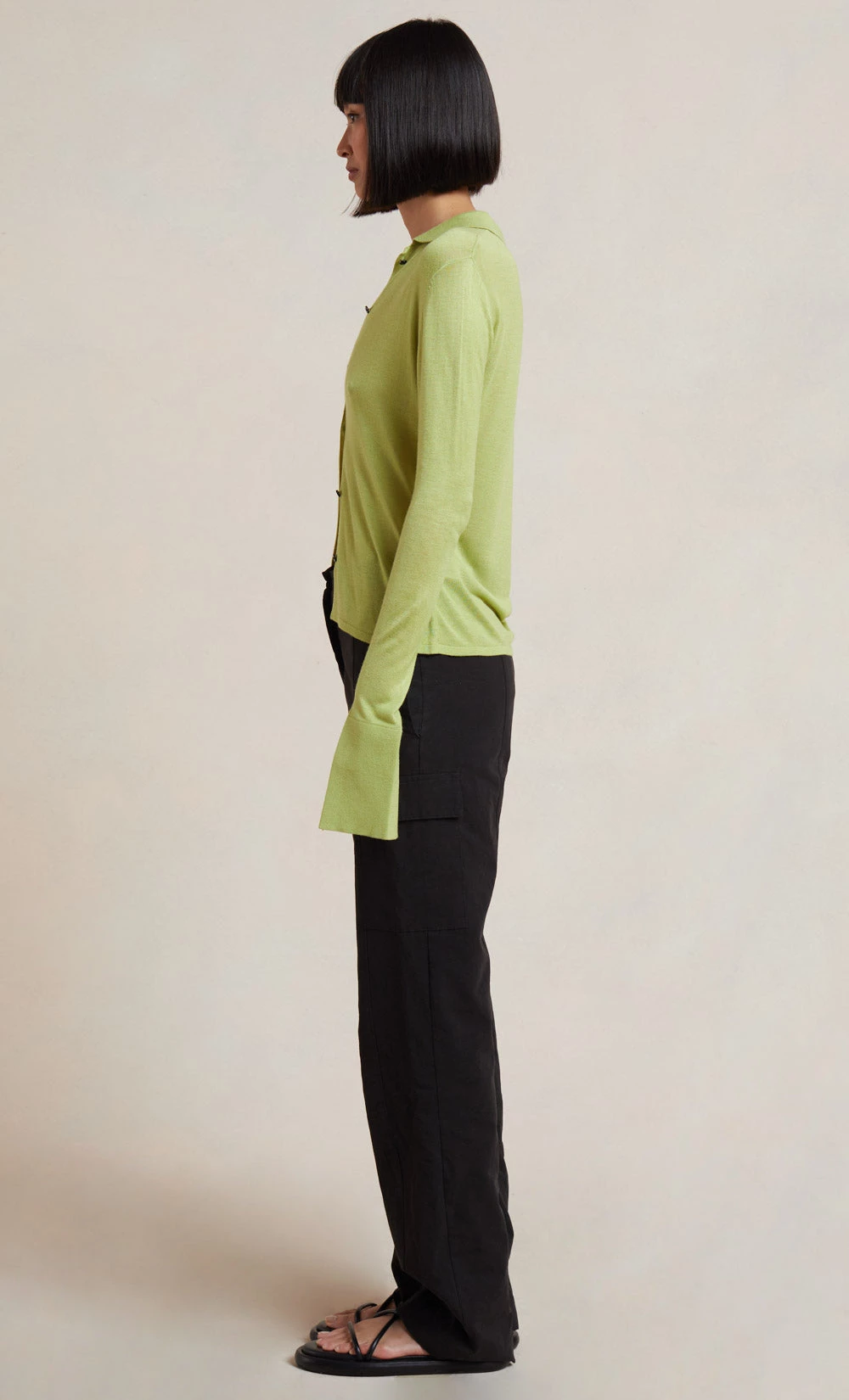 An essential wardrobe staple, the Spencer Knit Top is spun from a semi-sheer knit fabric in a relaxed silhouette. The cardigan features a front button placket closure and long sleeves with split cuffs. Styled with our Claude Pant.