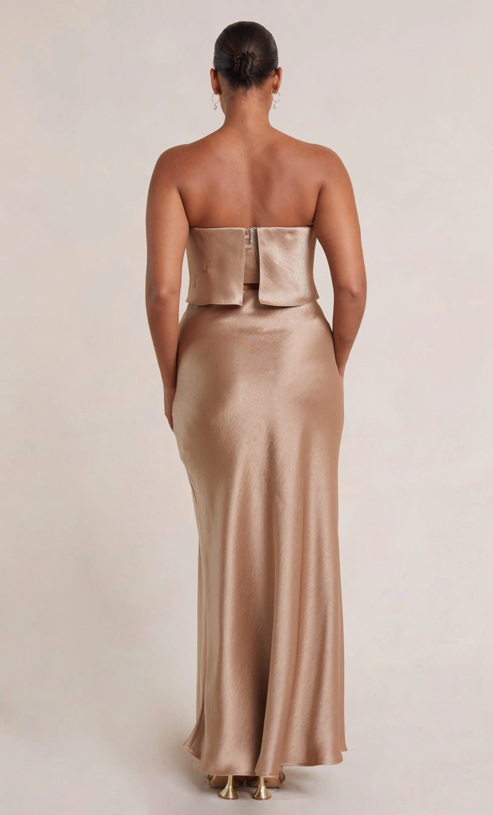 A classic ankle-length slip style skirt, the Dreamer Skirt cinches in at the high waist and skims the hips before falling into a floaty fit through the skirt. The skirt features a high side leg split. Styled with our Dreamer Strapless Top.
