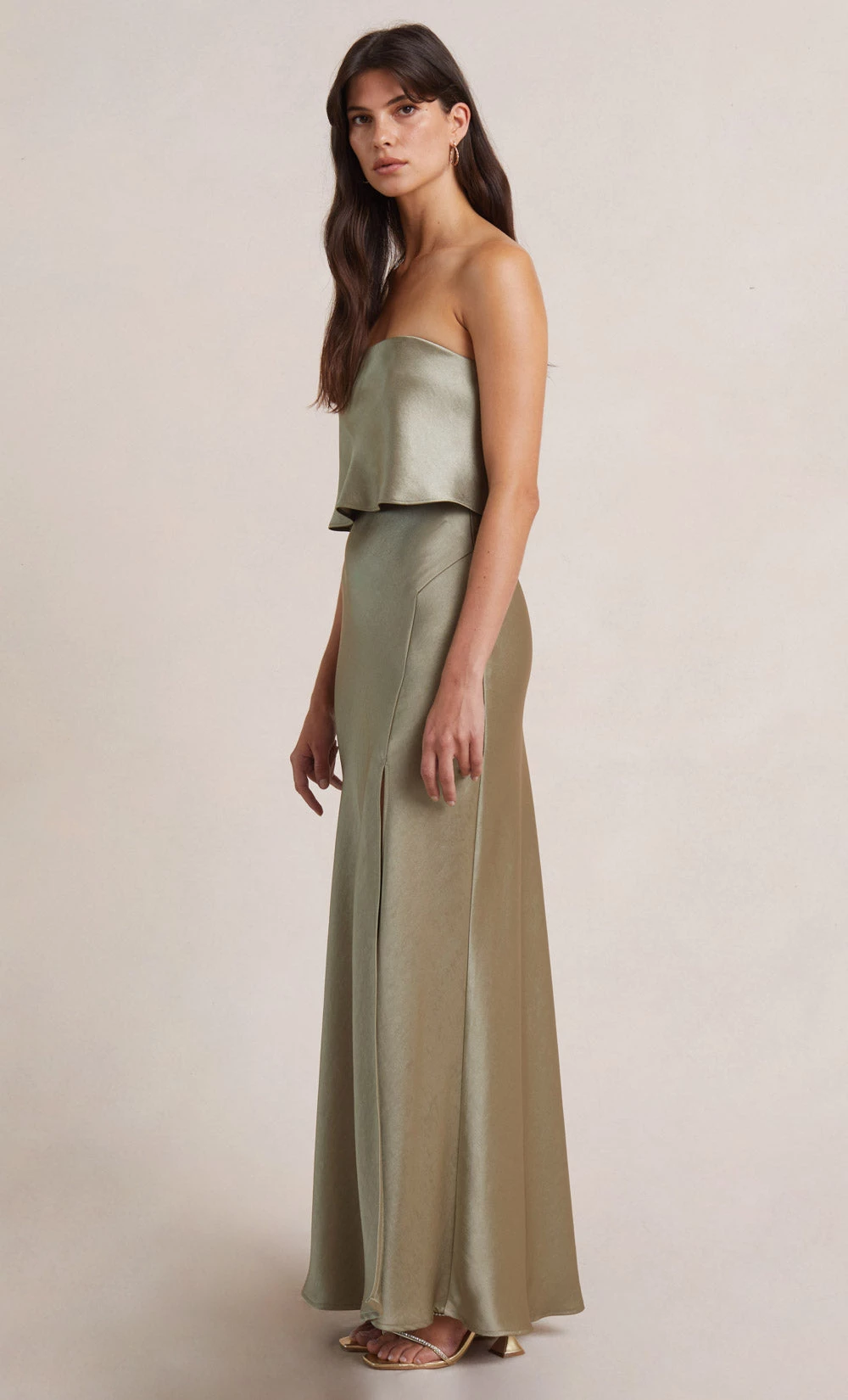 A classic ankle-length slip style skirt, the Dreamer Skirt cinches in at the high waist and skims the hips before falling into a floaty fit through the skirt. The skirt features a high side leg split. Styled with our Dreamer Strapless Top.