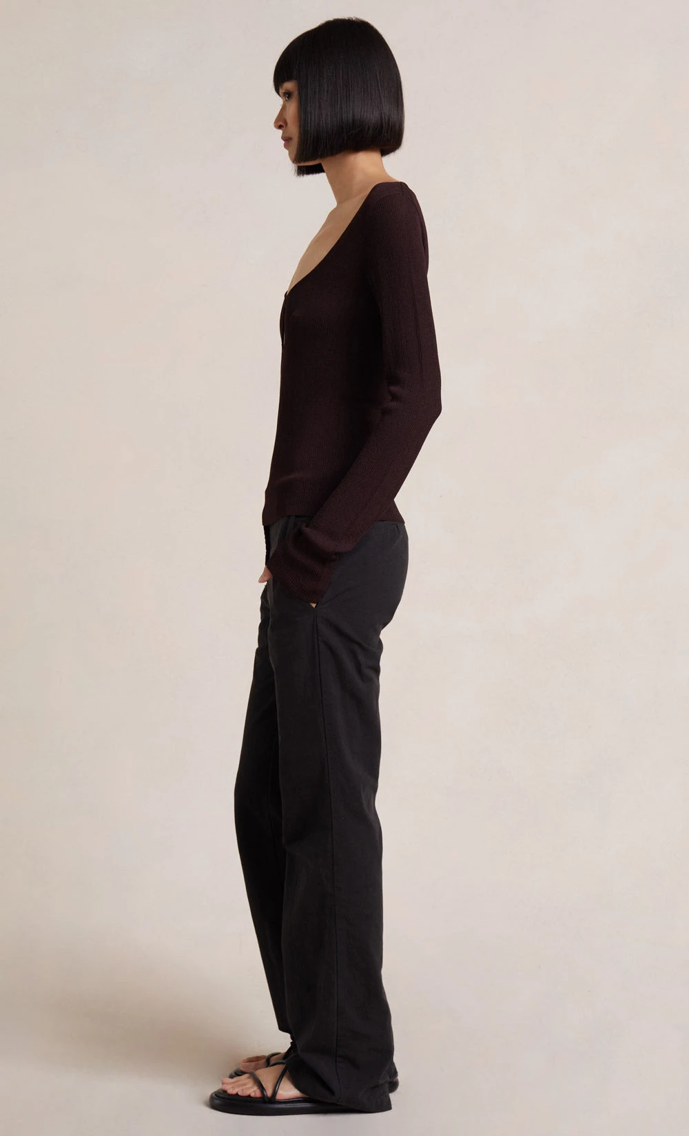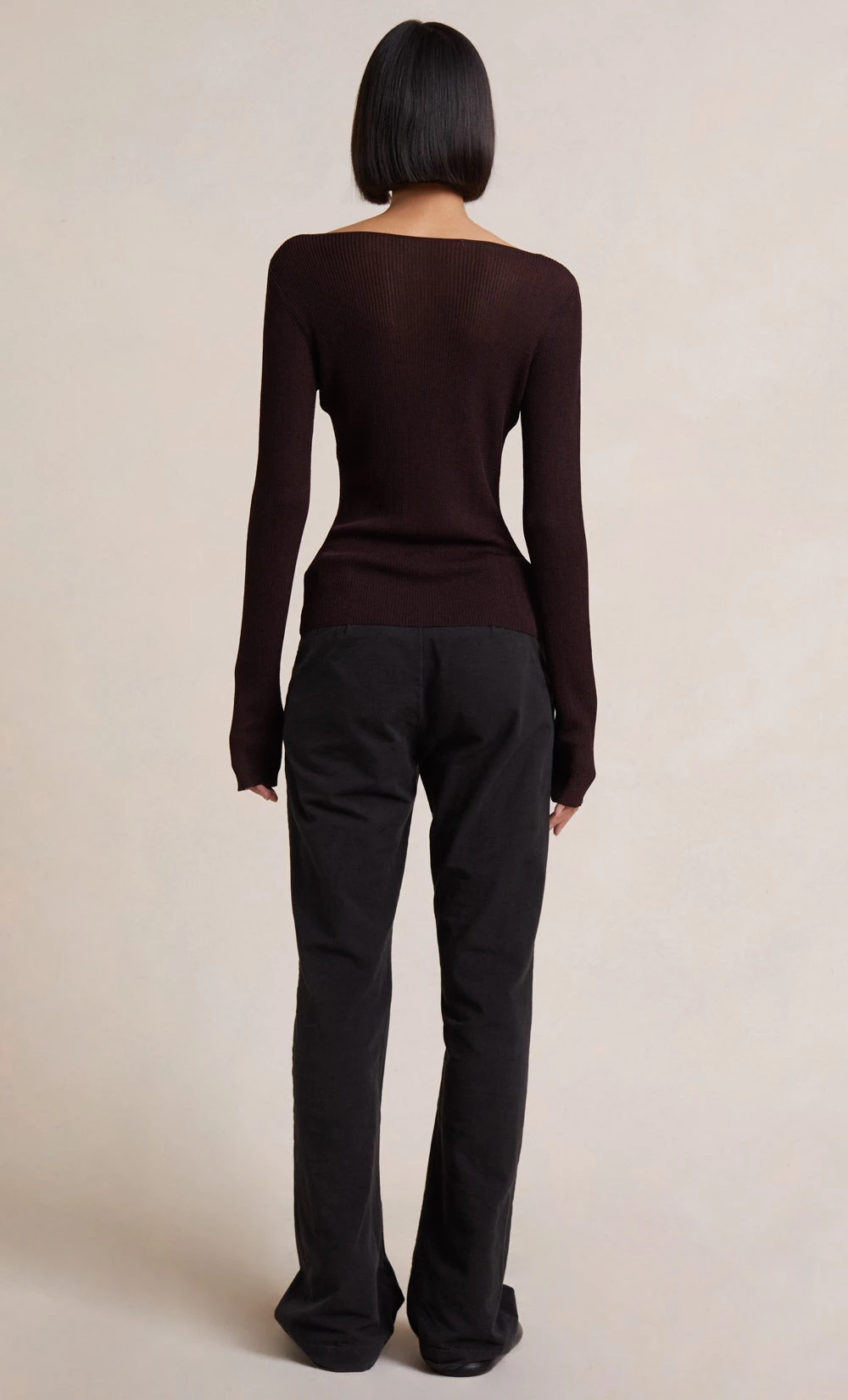 Bec&Bridge Tops ALLY KNIT LONG SLEEVE TOP – CHOCOLATE