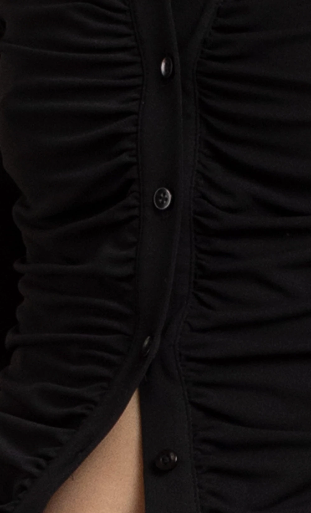 The Sylvia Long Sleeve Top is a flattering wardrobe staple. The top features a front button placket closure, a subtle statement pointed collar and long sleeves with split cuffs. The gathered detailing on the centre front and back cinches in the waist for a curvy, feminine silhouette.
