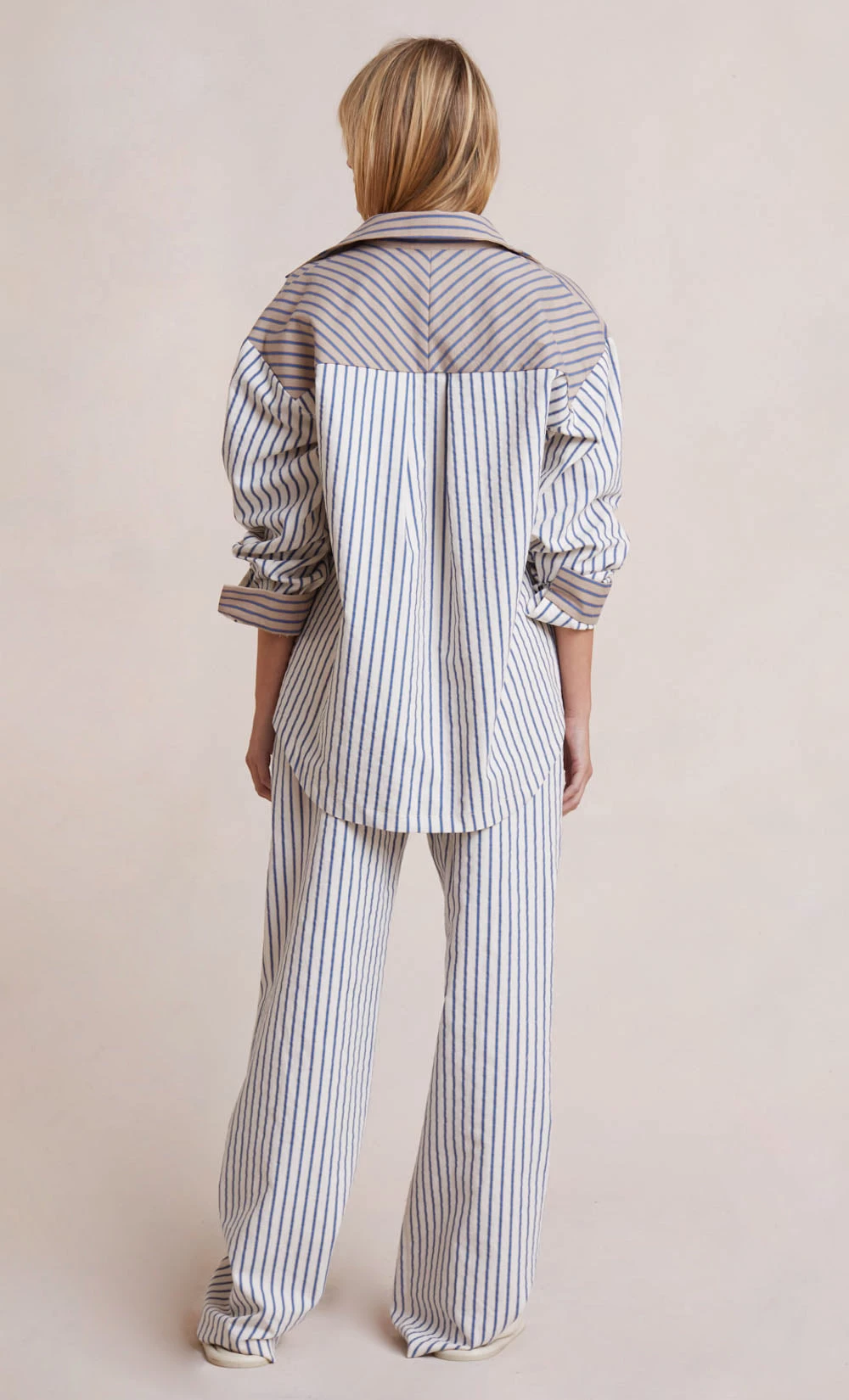 The Tori Shirt is a relaxed silhouette cut from a signature striped print fabric. The shirt features contrasting details with a peak collar and long sleeves in a boxy fit style. Styled with our matching Tori Top and Tori Pant.
