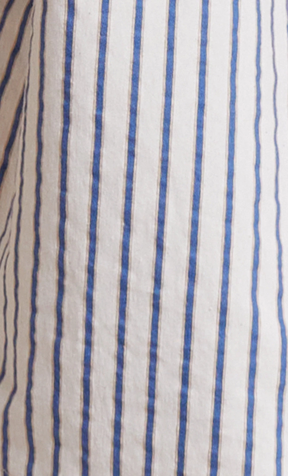 Cut from a signature striped print fabric, the Tori Pant is a chic and easy-to-wear tailored pant that sits high on the waist before falling into a relaxed straight leg silhouette. The pants are finished with front side pockets and pleat details. Styled with our Tori Top and Tori Shirt.