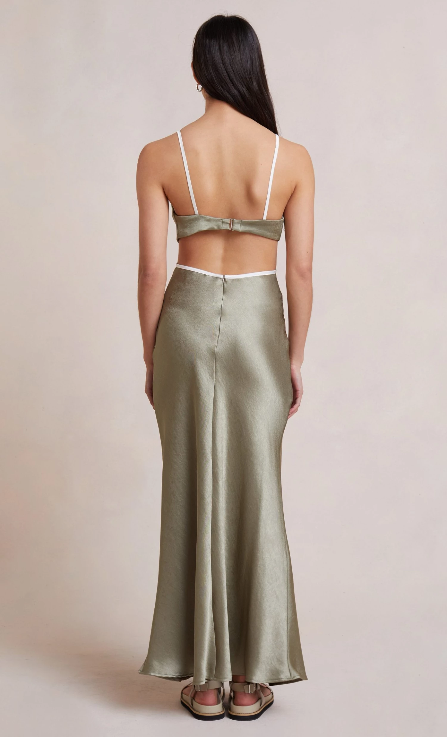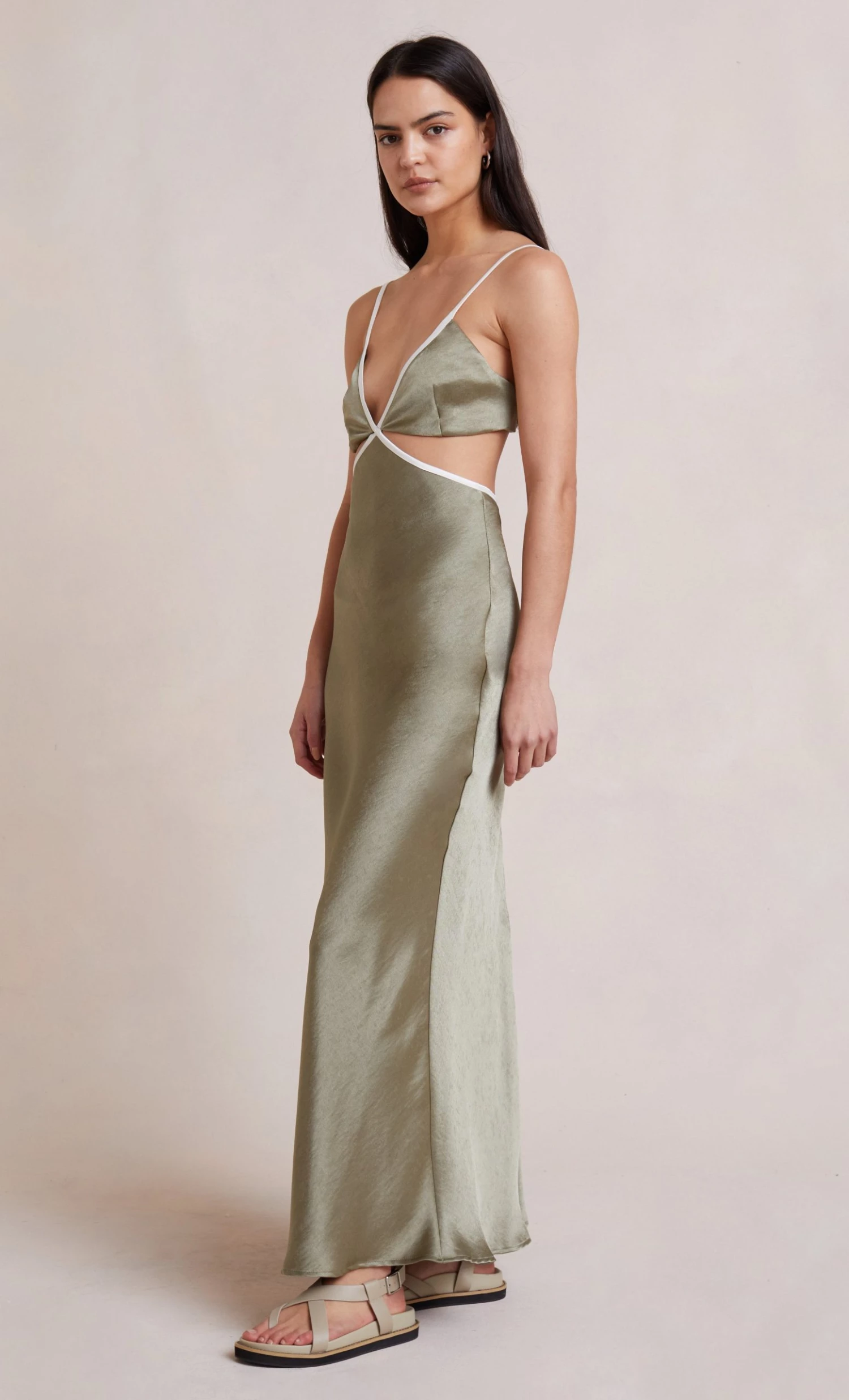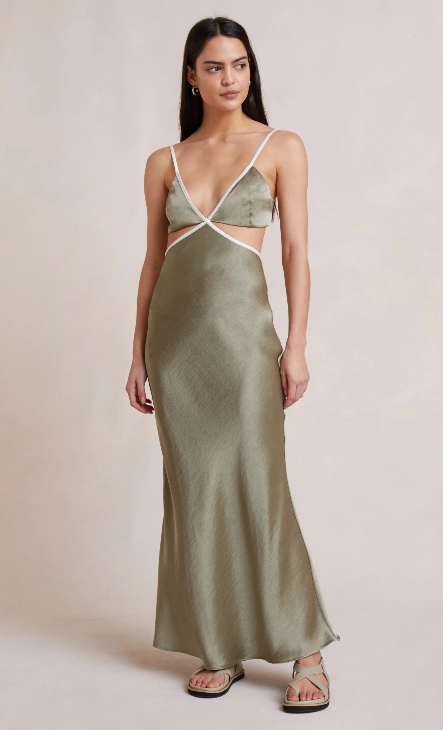 Bias cut maxi dress with silk contrast detail