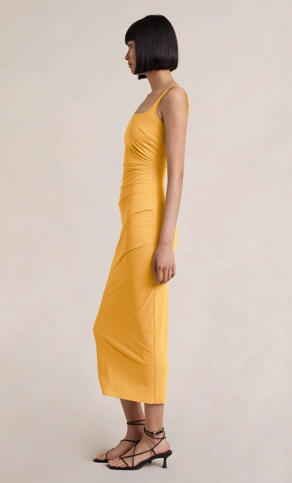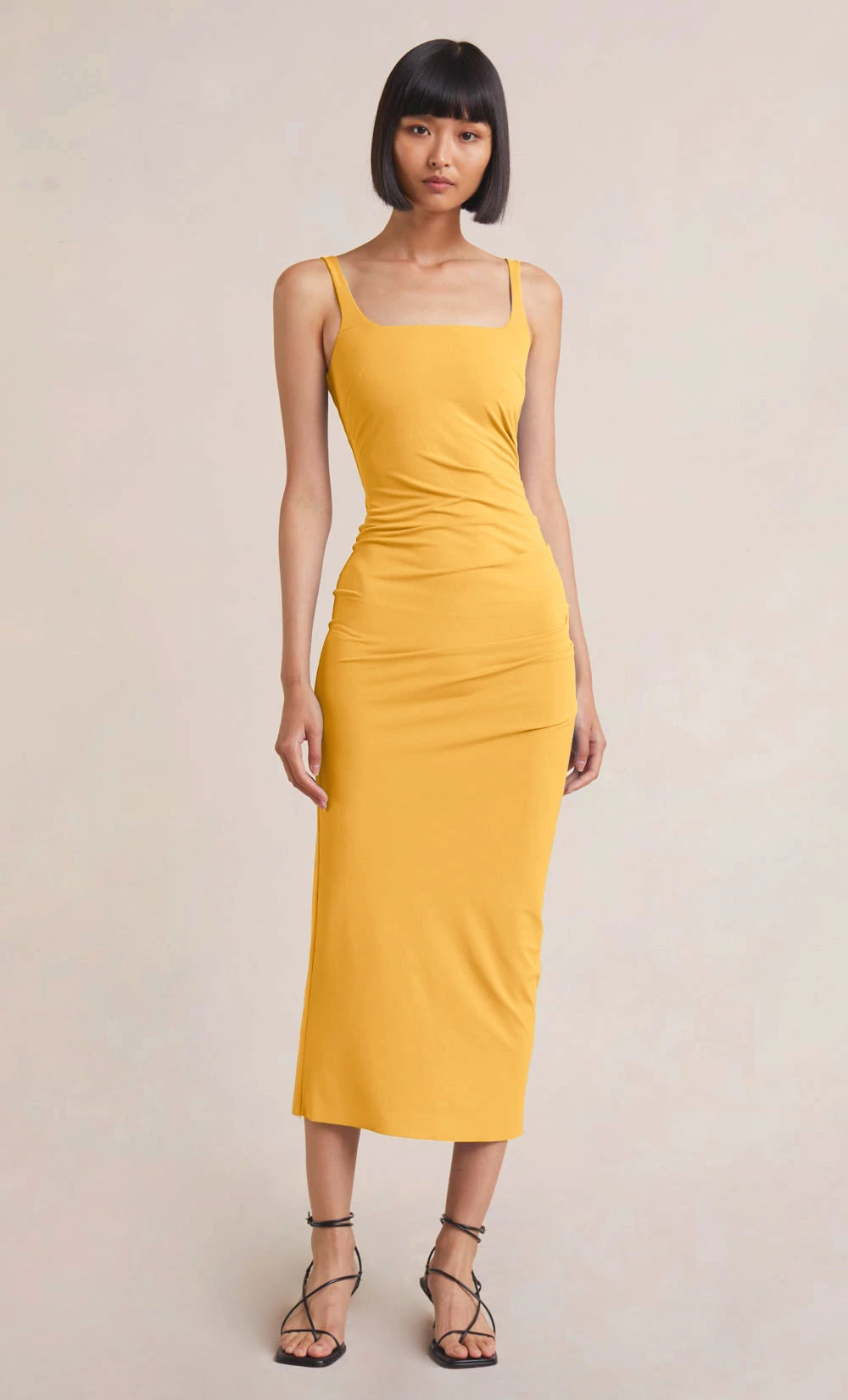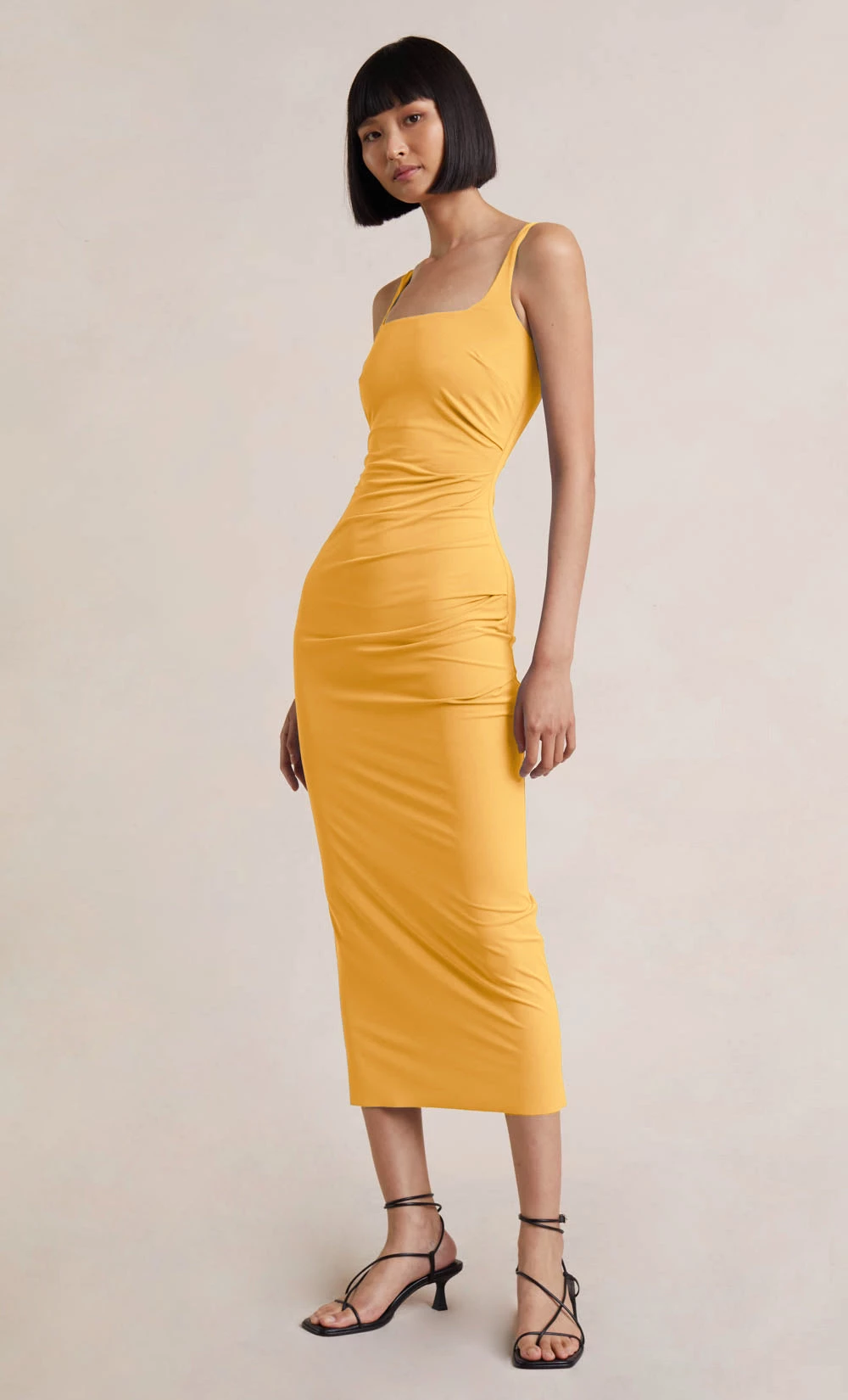 Crafted in a timeless silhouette, the Yasmin Midi Dress is a versatile and chic style. The fitted midi features a flattering square neckline, thin straps and tuck detailing.